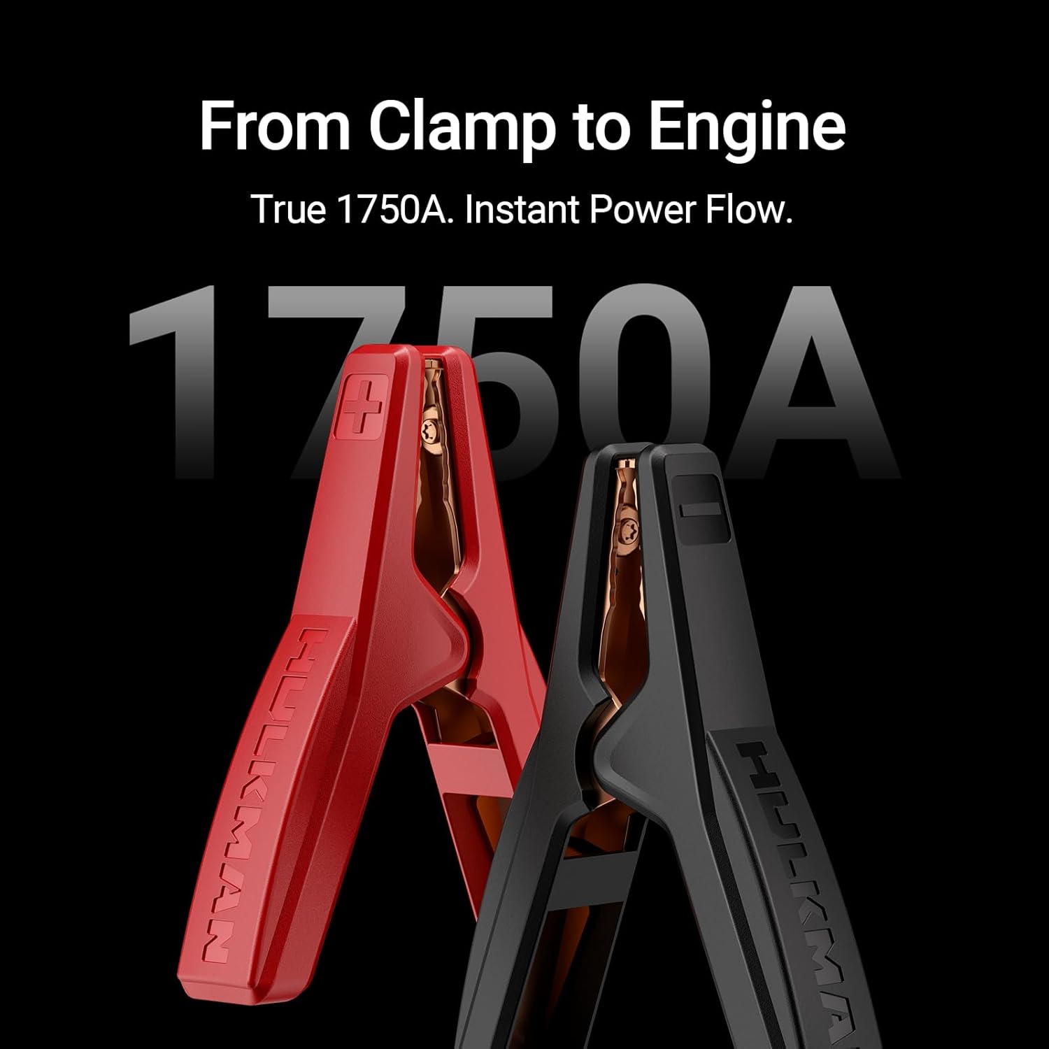 - [Start Dead Batteries] Delivers true 1750A peak current from the clampsâenough to jump start 8.0L Gas/5.0L Diesel engines.