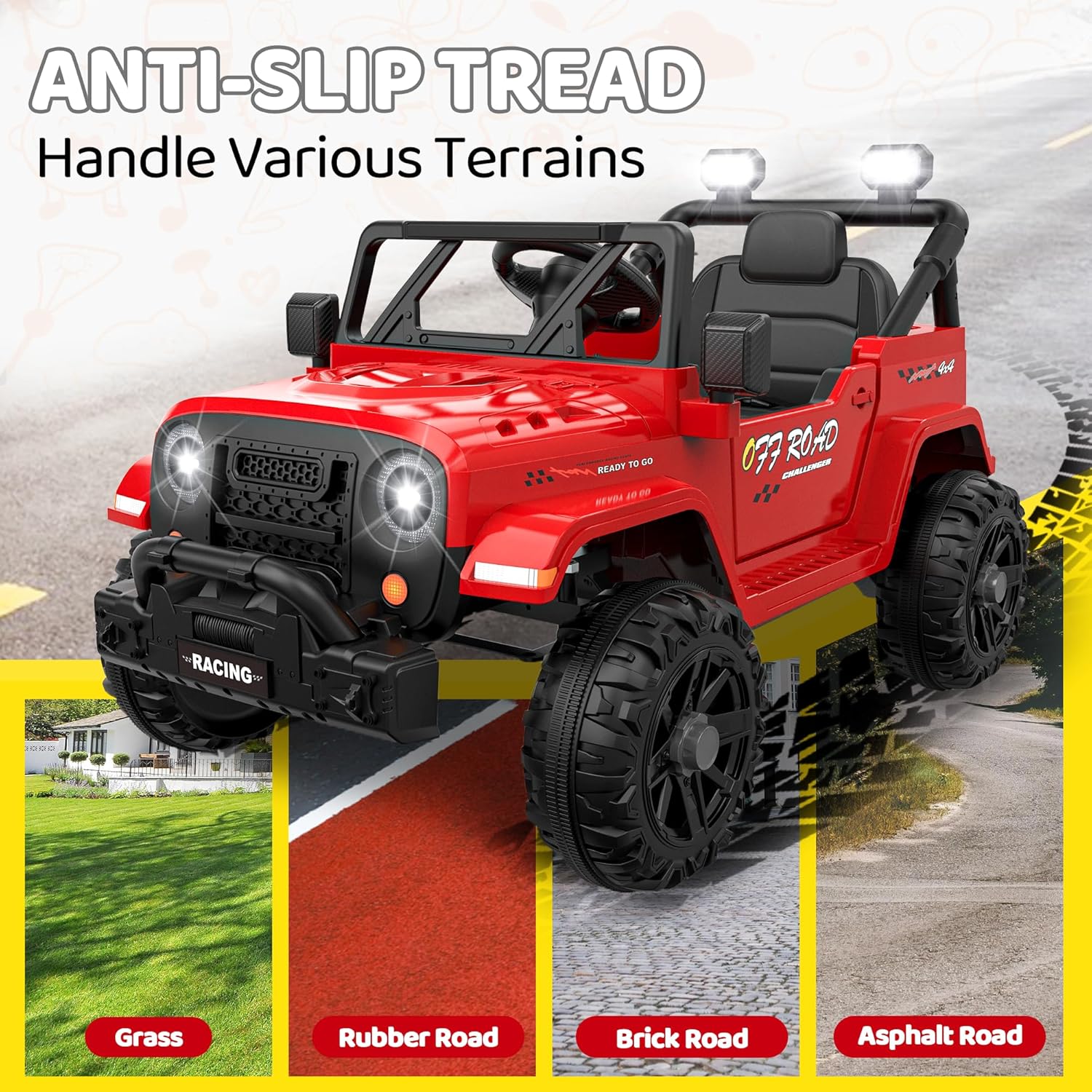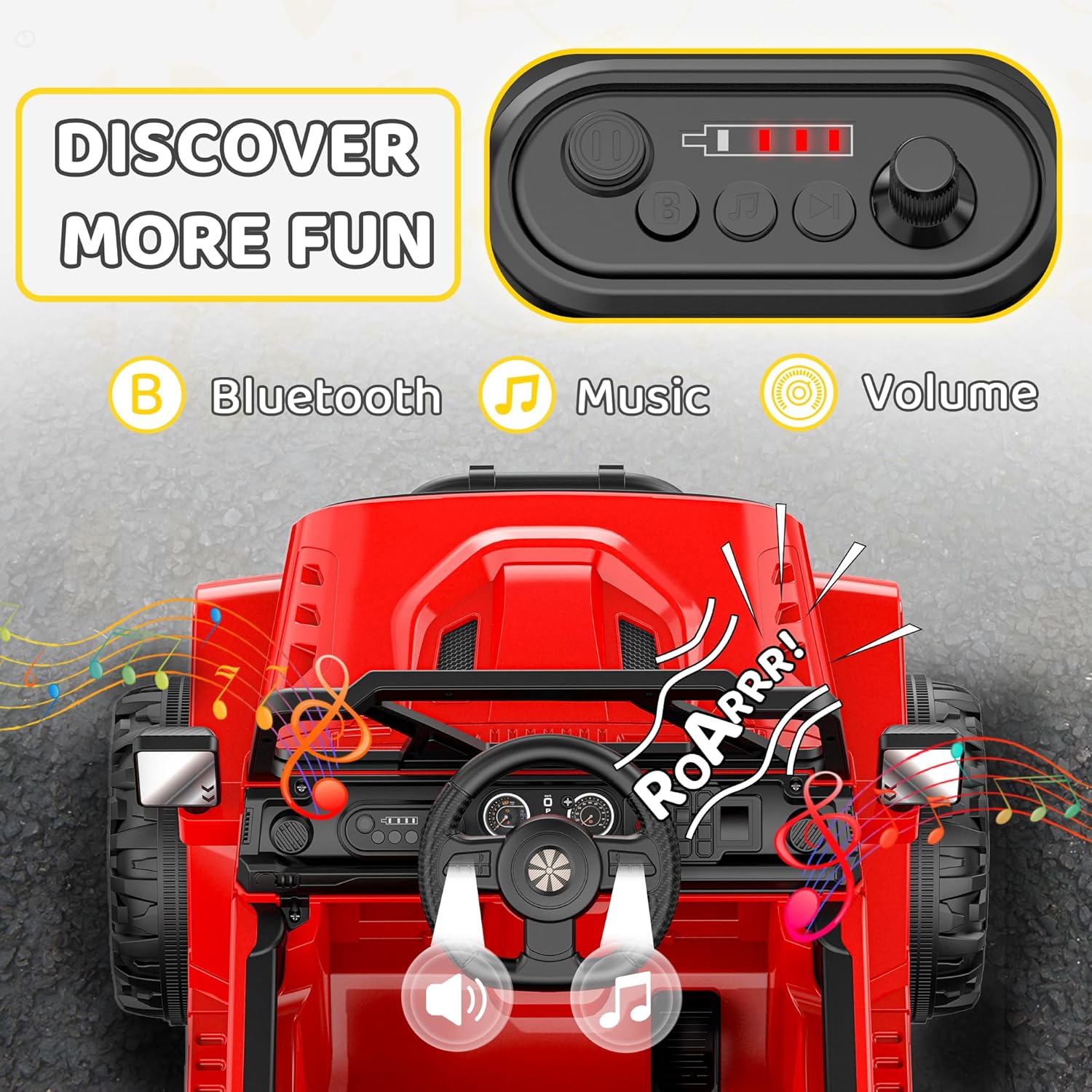 12V Ride On Truck Car with Remote Control, Kids Electric Vehicles with Bluetooth Music, Horn, 3 Speeds, 4 LED Lights, Soft Start, Ride-on Toy for Toddler Boys & Girls (Red)