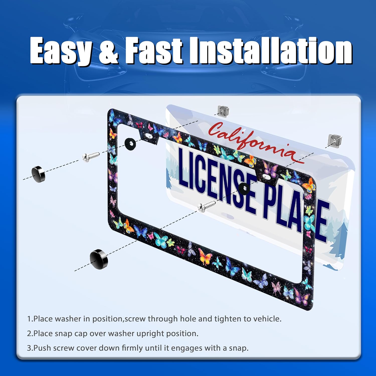 Beautiful Butterfly License Plate Frame Watercolor License Plate Stainless Steel Colorful License Plate Holder Car Accessory with Screws Car Decoration 12.3" x 6.3" Fits Standard Vehicles Size
