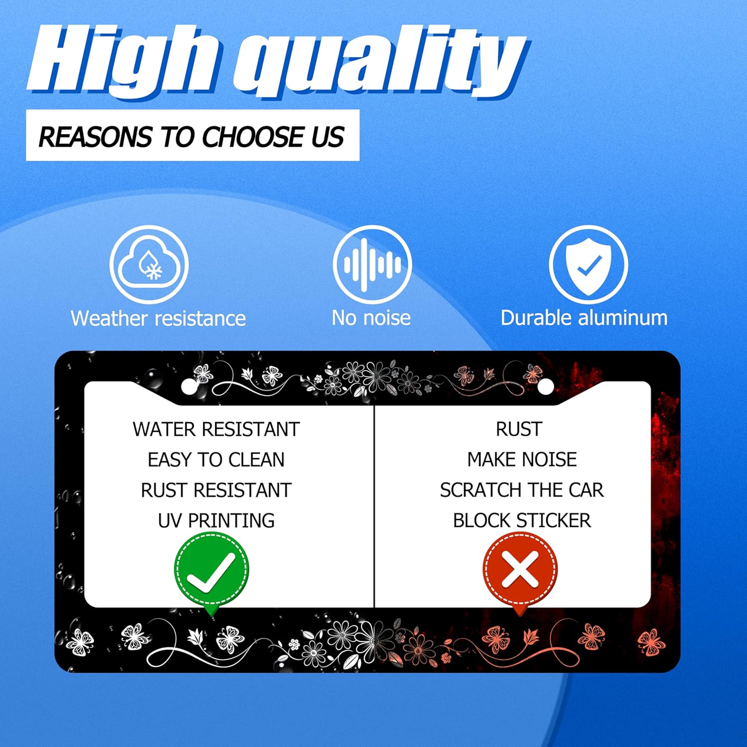 - Design:Use Advanced digital printing Protects license plate frames from Whether it's a car wash, heavy rain or hot weather, it still looks brand new,Let your car still be unique and stylish while driving on the road
