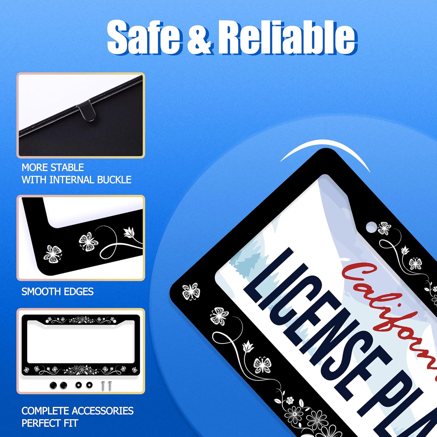 Black White Daisy Butterfly License Plate Frame Flowers License Plate Stainless Steel Funny License Plate Holder Floral Car Accessories With Screws Car Decoration 12.3"x6.3"Fits Standard Vehicles Size