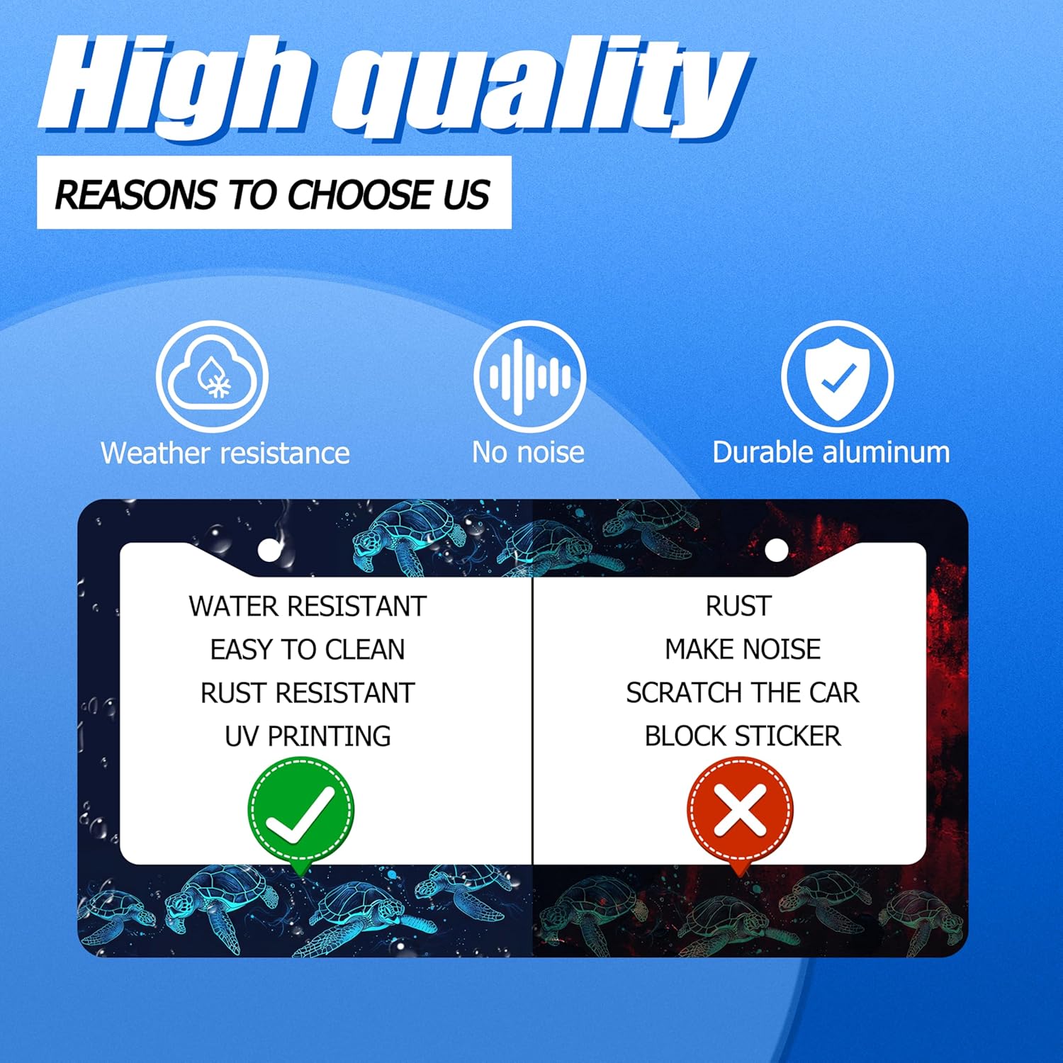 Sea Turtle License Plate Frame Blue Turtles License Plate Stainless Steel Funny License Plate Holder Ocean Animal Car Accessory Car Decoration 12.3" x 6.3" Fits Standard Vehicles Size