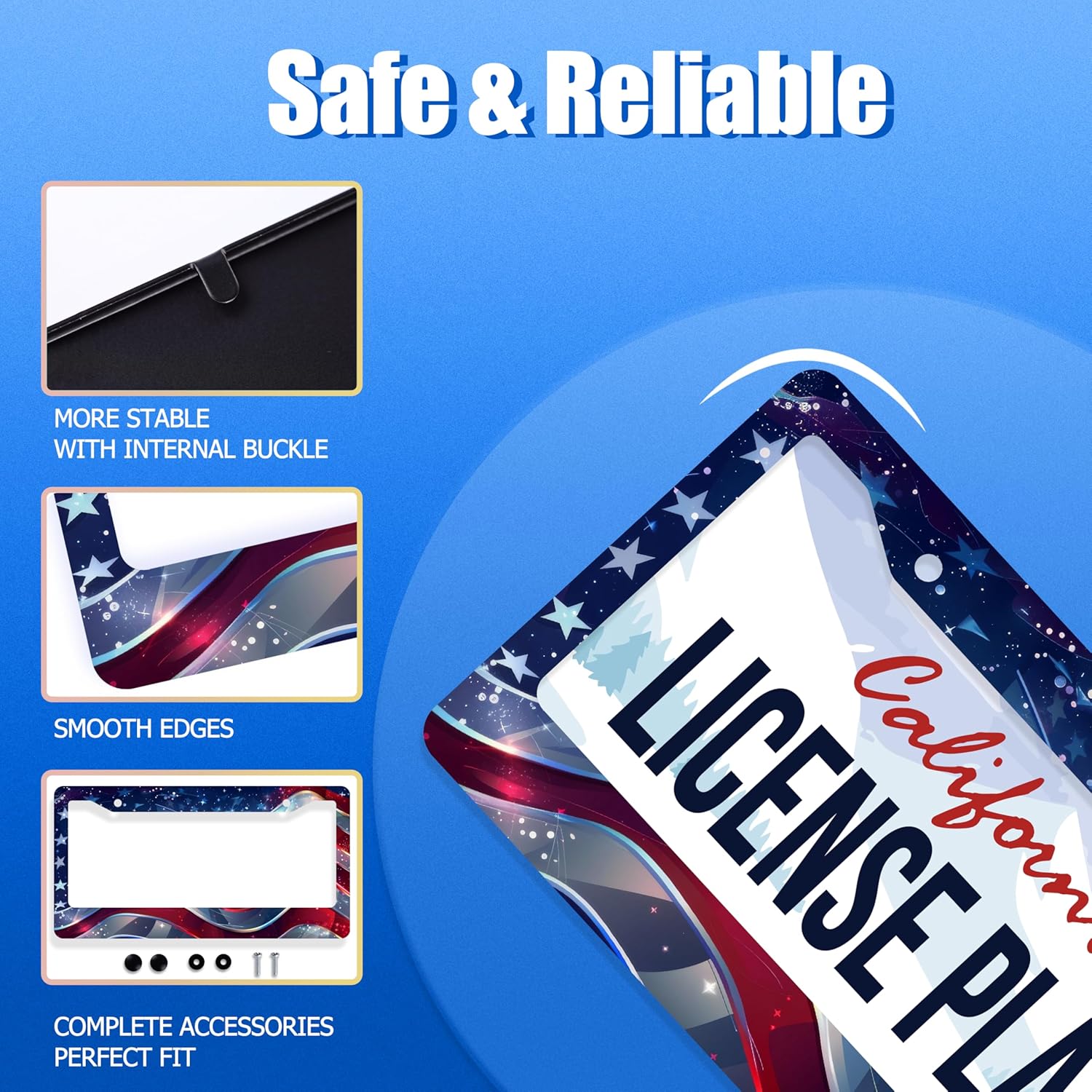 Patriotic American Flag License Plate Frame USA Flag License Plate Stainless Steel Funny License Plate Holder America Car Accessories With Screws Car Decoration 12.3" x 6.3"Fits Standard Vehicles Size