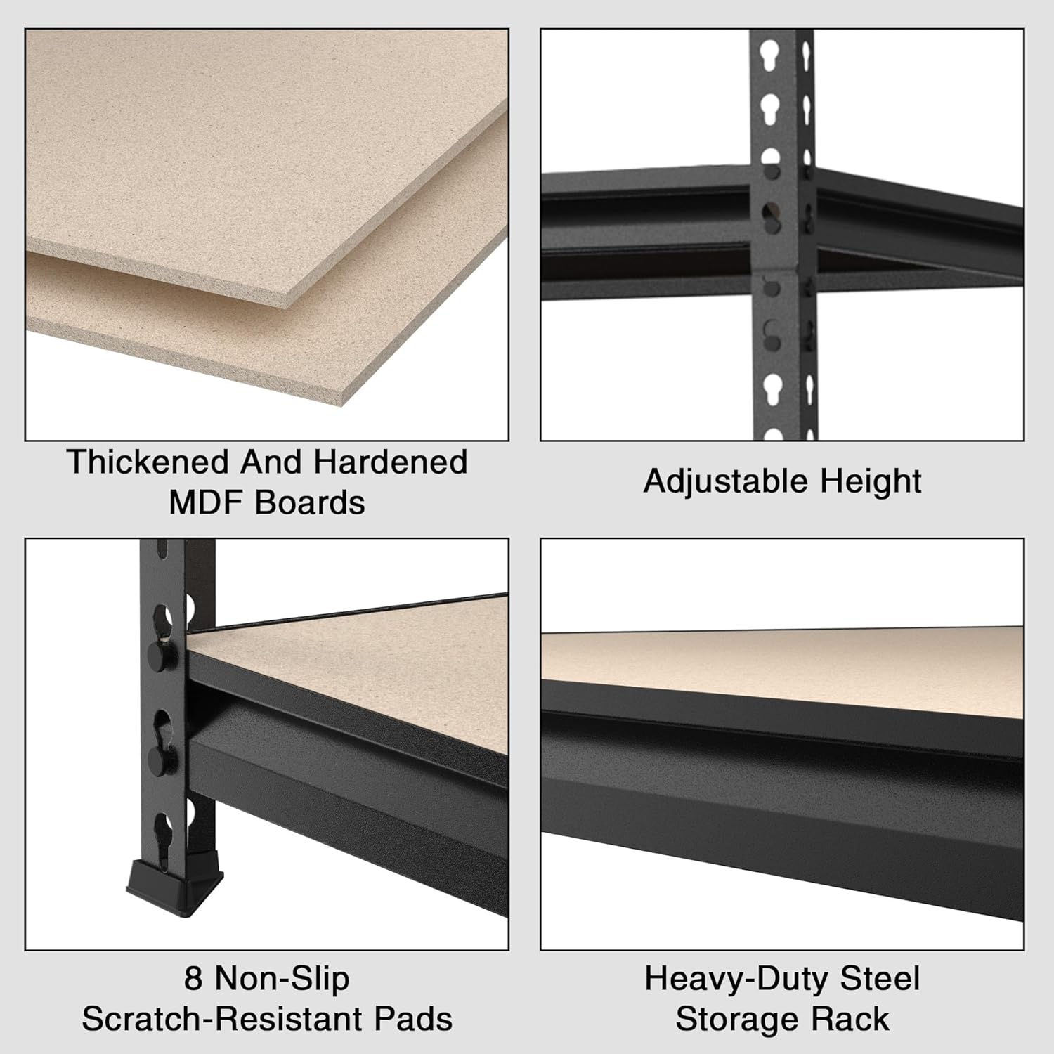 WORKPRO 4000LBS Storage Shelves, 5-Tier Metal Shelving Unit, Adjustable Garage Shelving with Particle Board, Heavy Duty Storage Rack for Garage, Kitchen, Basement, Warehouse, Black, 72"H x 36"W x 18"D