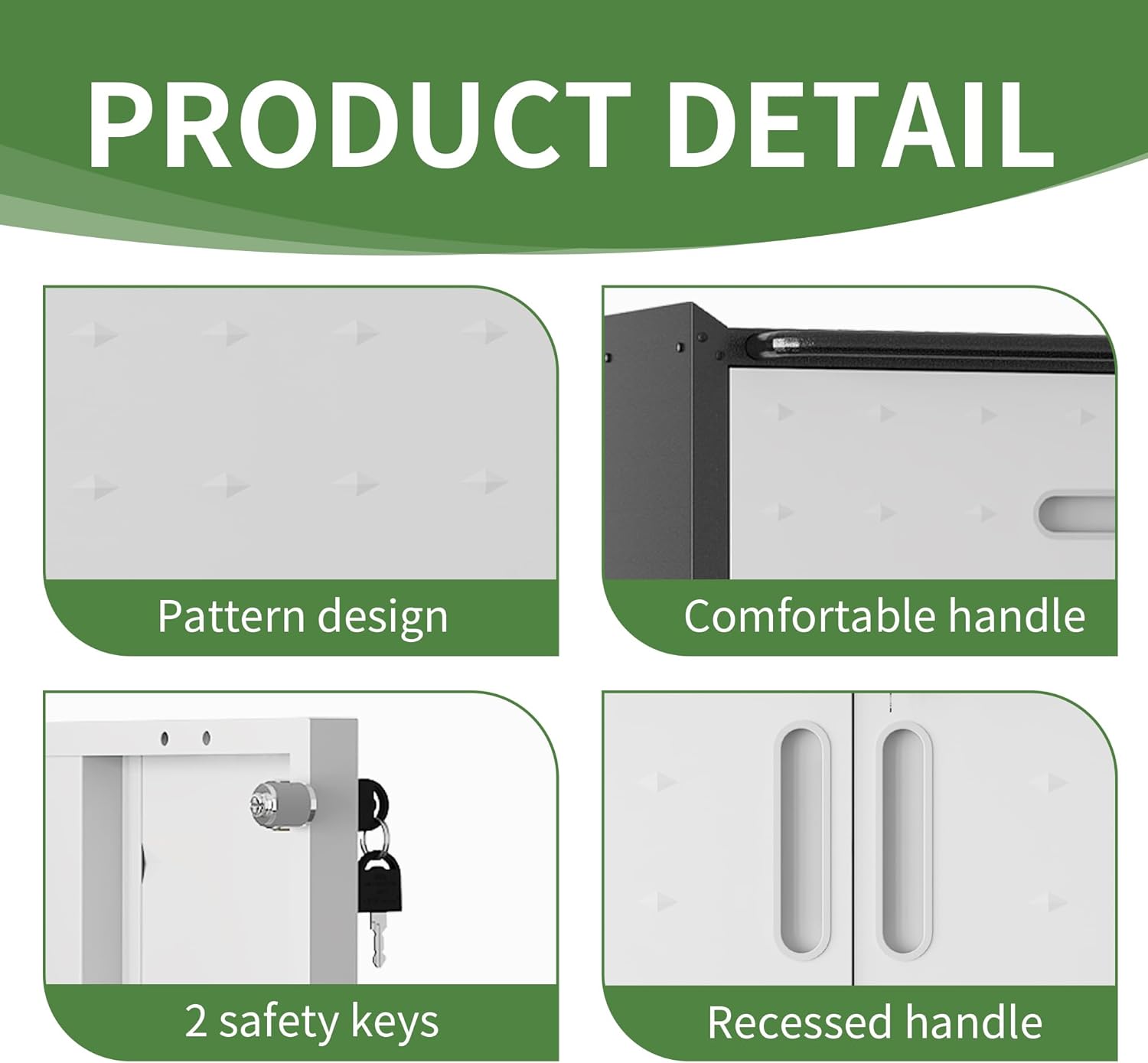 - Multi-scene Use: Wall cabinet is suitable for home, garage, warehouse, kitchen, tool room, especially for garage and tool room, for you to place tools and daily necessities to provide sufficient safe storage space, keep the room clean.