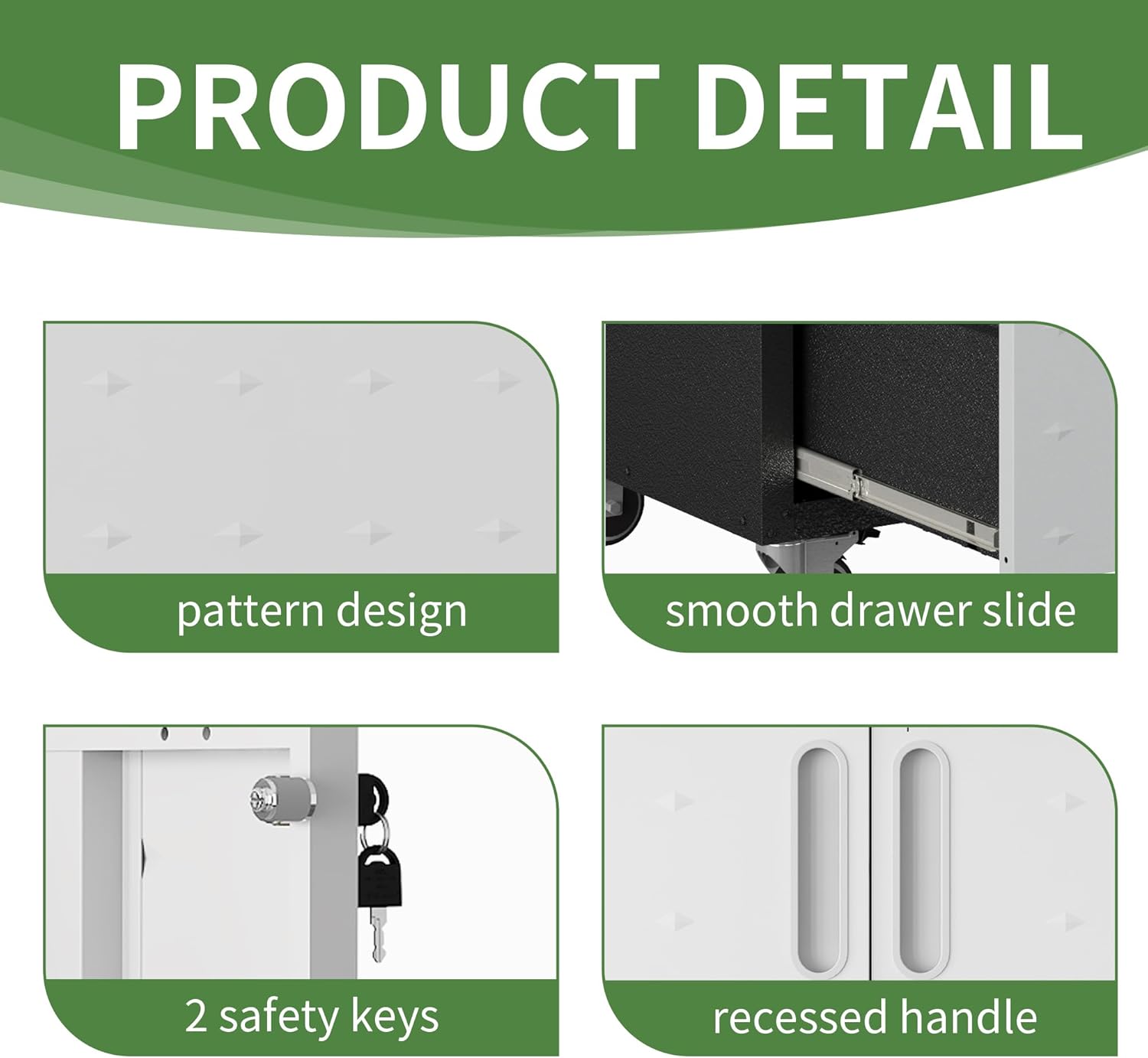 - Four Rotation Wheel: Our metal cabinet has four rotating wheels, which is very convenient to move, and two fixed wheels can ensure that the cabinet is fixed when it needs to be fixed. The handle on the cabinet is convenient for you to push and pull, and you can take your cabinet to any place you want to go.