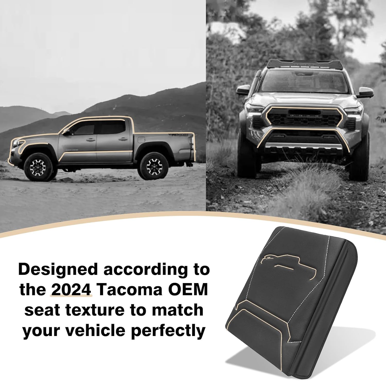 Muslogy Center Console Armrest Cover Compatible with 2024+ Toyota Tacoma 2025+ 4Runner Accessories Armrest Lid Protector Vegan Leather Cushion 1-Inch Extra Thick(Black/Gray Stitching)