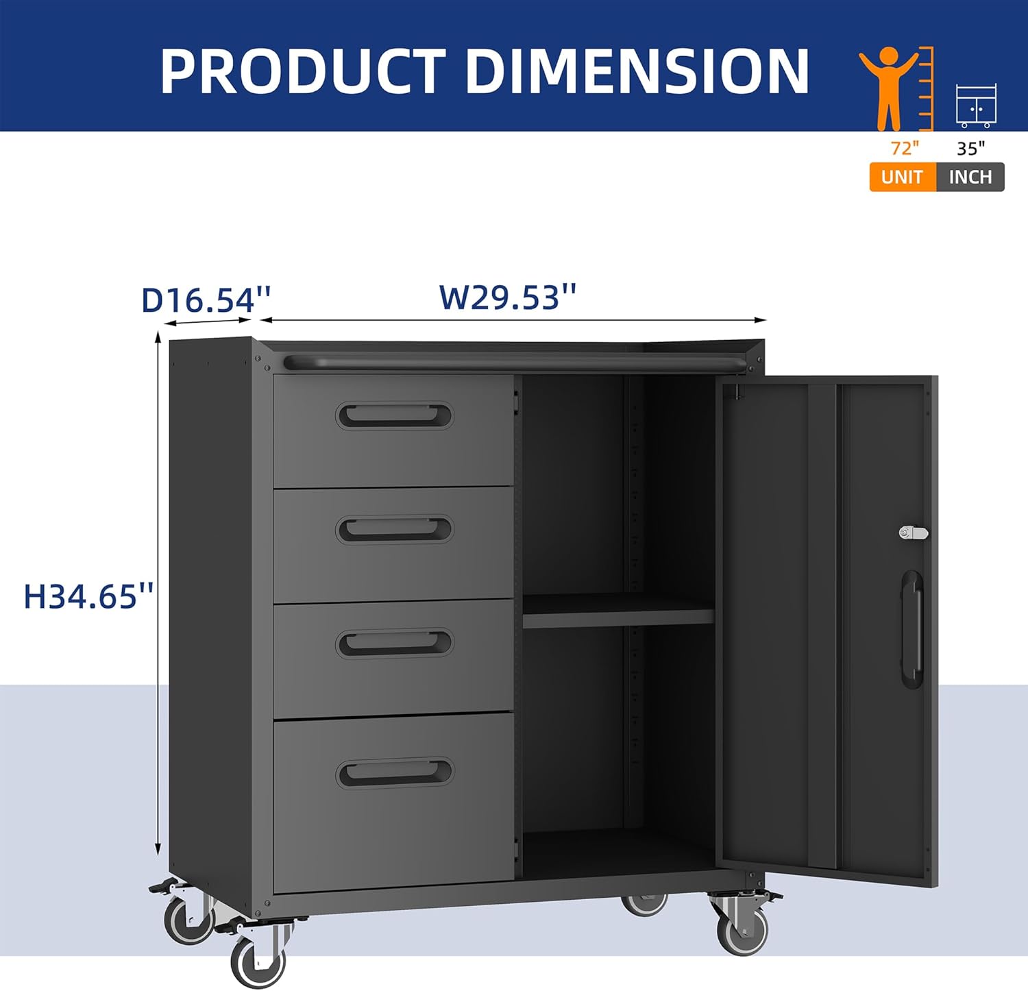 - Safety Lock: This tool cabinets on wheels is equipped with two keys to protect your personal belongings, built-in handle for you to open the door, easy access to things, double door design is simple and generous, suitable for most scenarios.