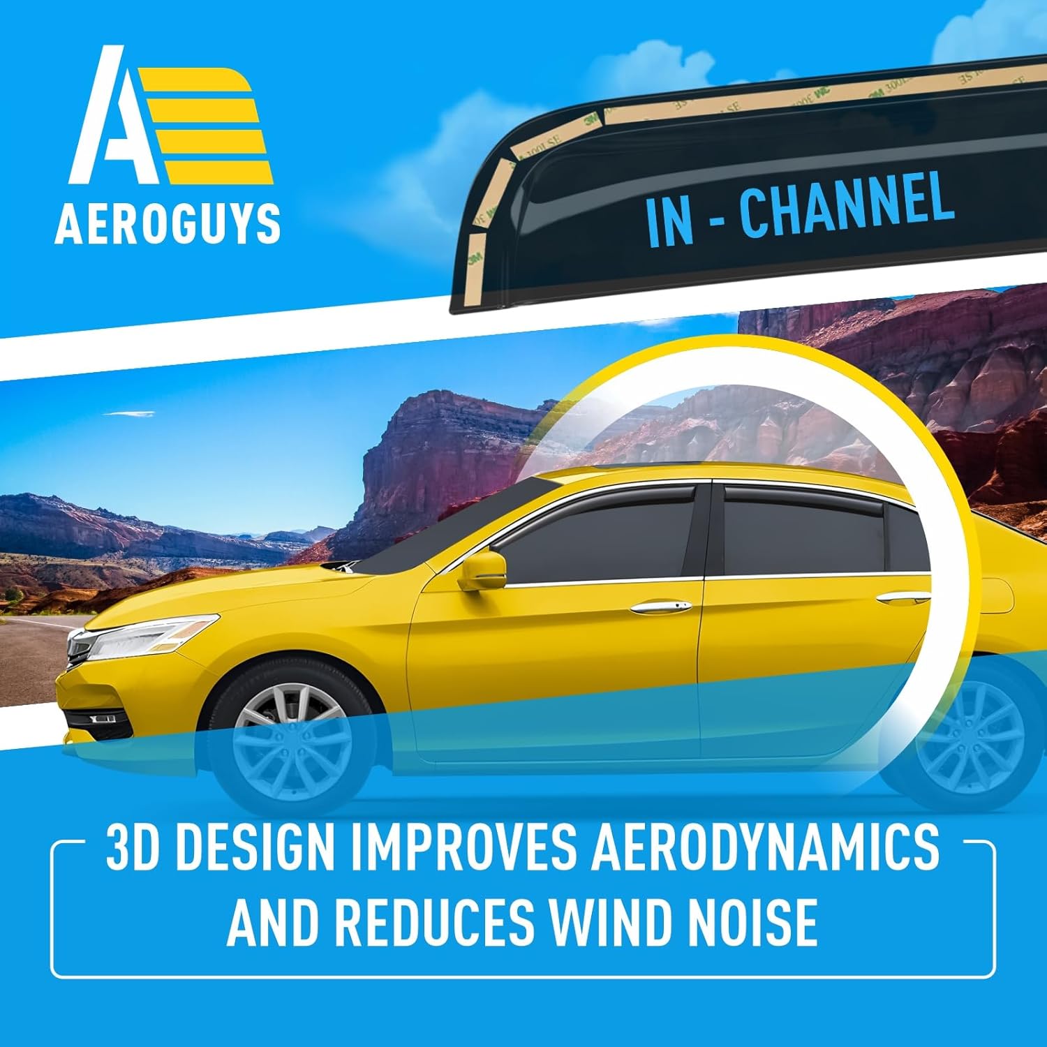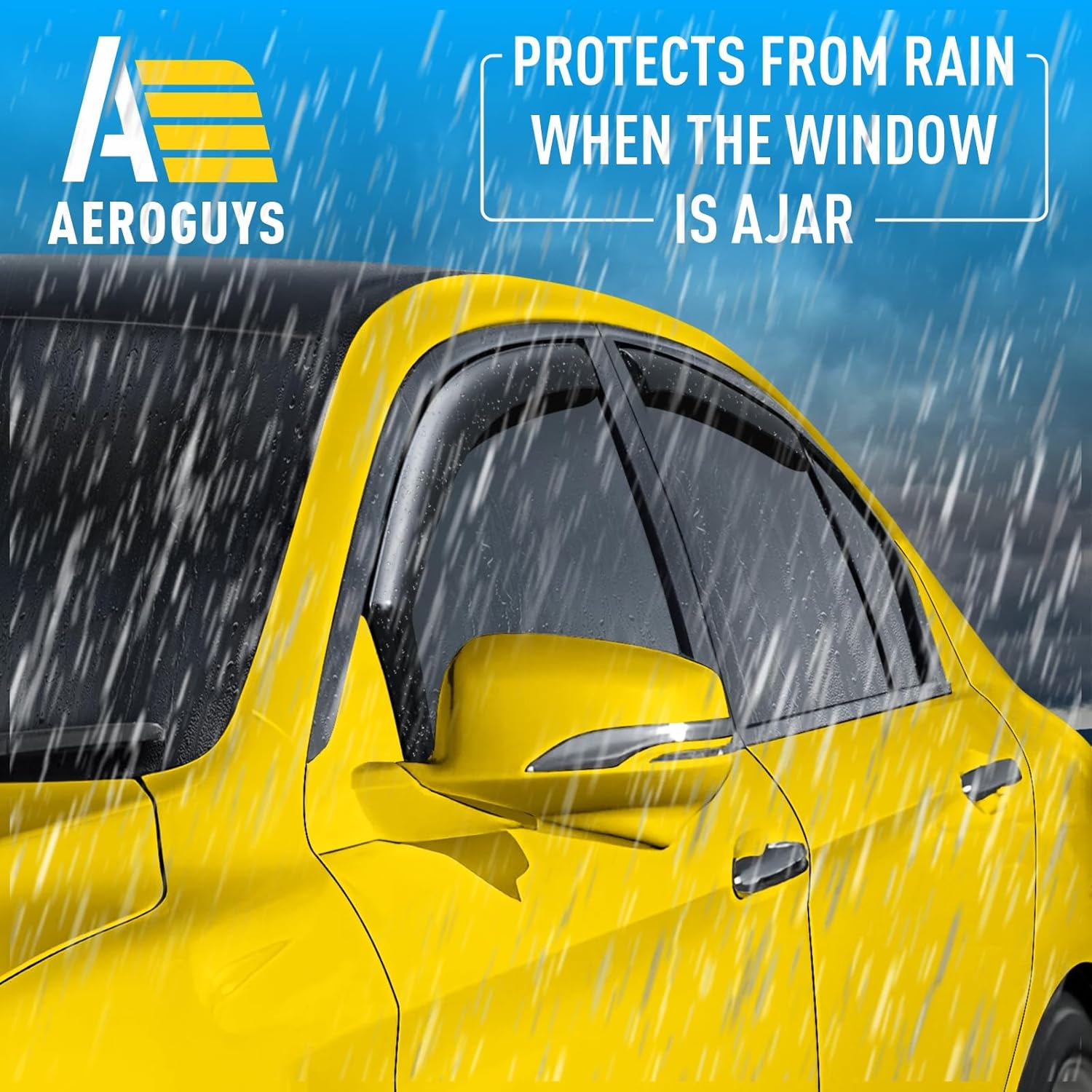 - No Tools Needed, Quick and Easy Assembly β These rain guards are very easy to fit. IN-CHANNEL INSTALLATION provides perfect fit for your car. Just slip it onto your carβs window and your job is done within minutes. There is no drilling or no tools required. Be sure that AEROGUYS window deflectors are water resistant, sun protective and will not bend, break or crack regardless of the weather conditions.