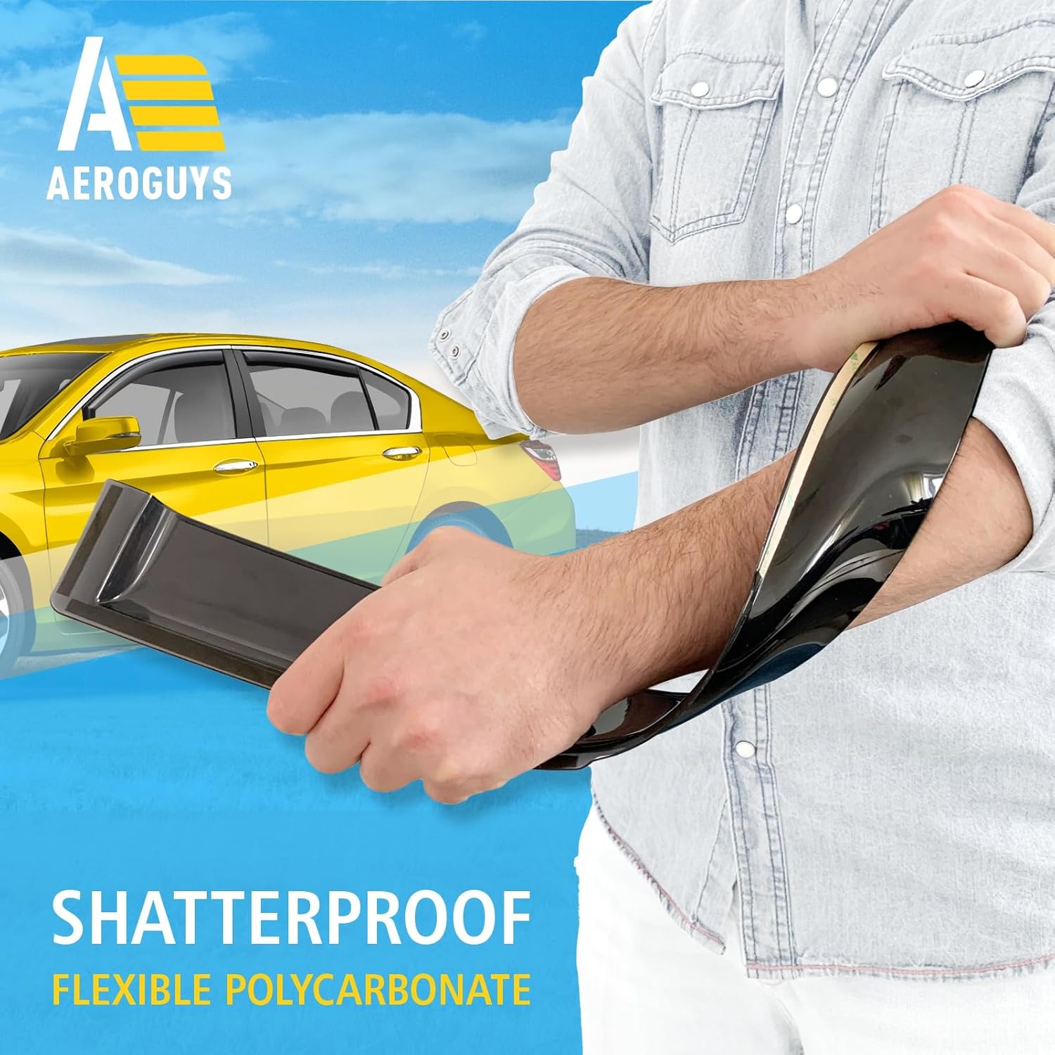 - Incredibly Durable AEROGUYS Auto Window Deflectors β They are made with strong and tough polycarbonate which is clear and scratch-resistant. They also provide UV protection making your ride more comfortable under all weather conditions.
