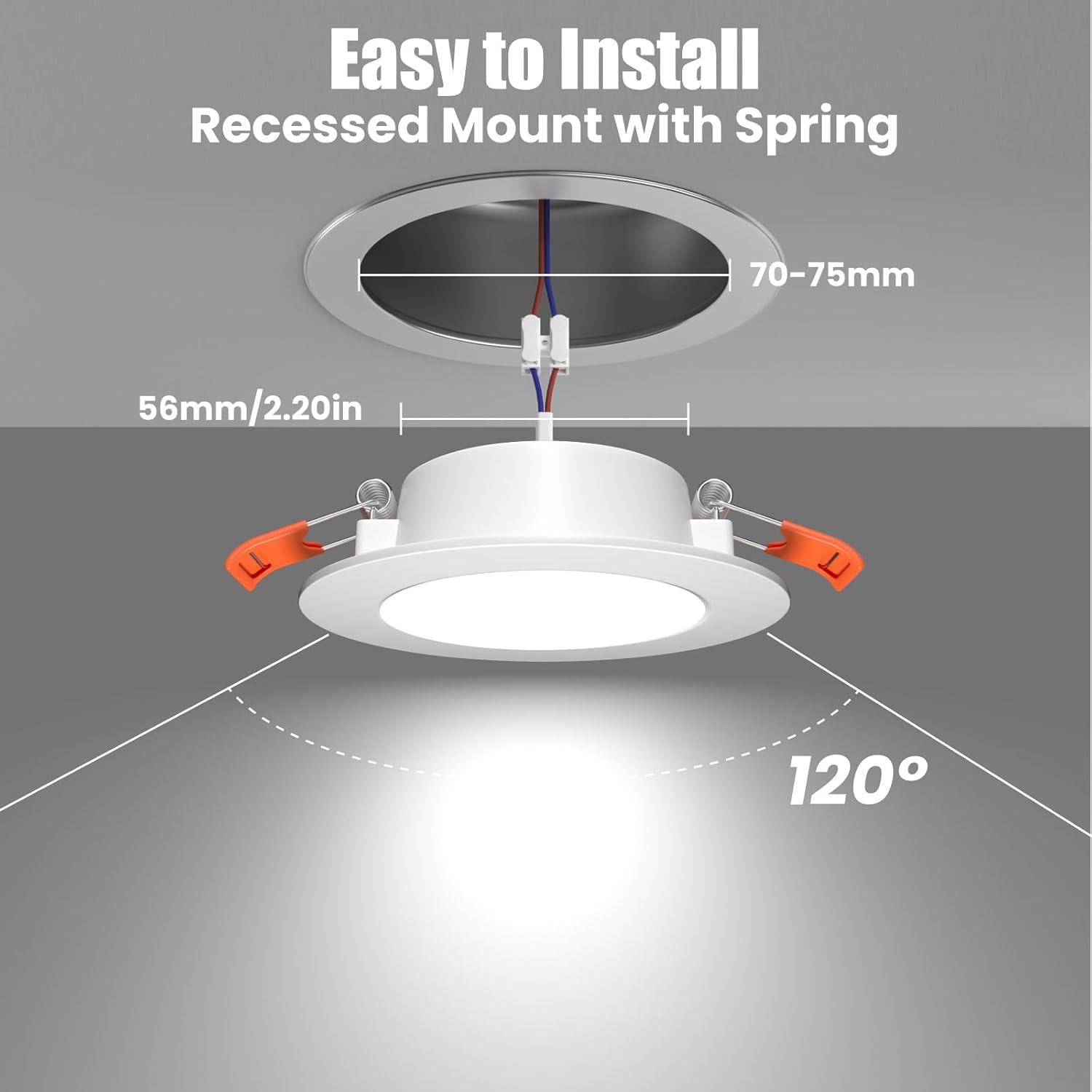- 70-75mm Cutout: TrustWheel 12V LED downlights is designed for recessed installation in a 70mm cutout on under cabinets or ceilings,secured by 2 stainless steel spring clips for durability, shock resistance, and moisture protection