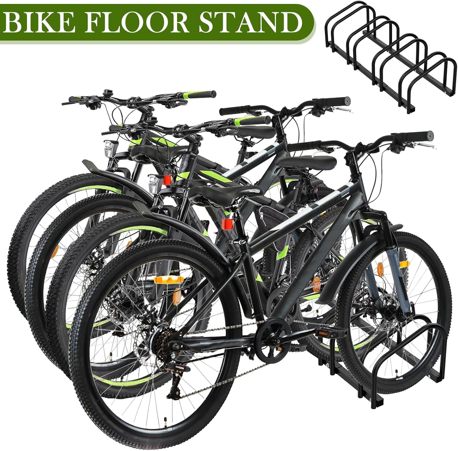 iCool Bikes Floor Bike Stand for 4 Bike, Bike Parking Rack Garage Bike Storage Indoor/Outdoor Stand, Max. Tire Width 2.15"