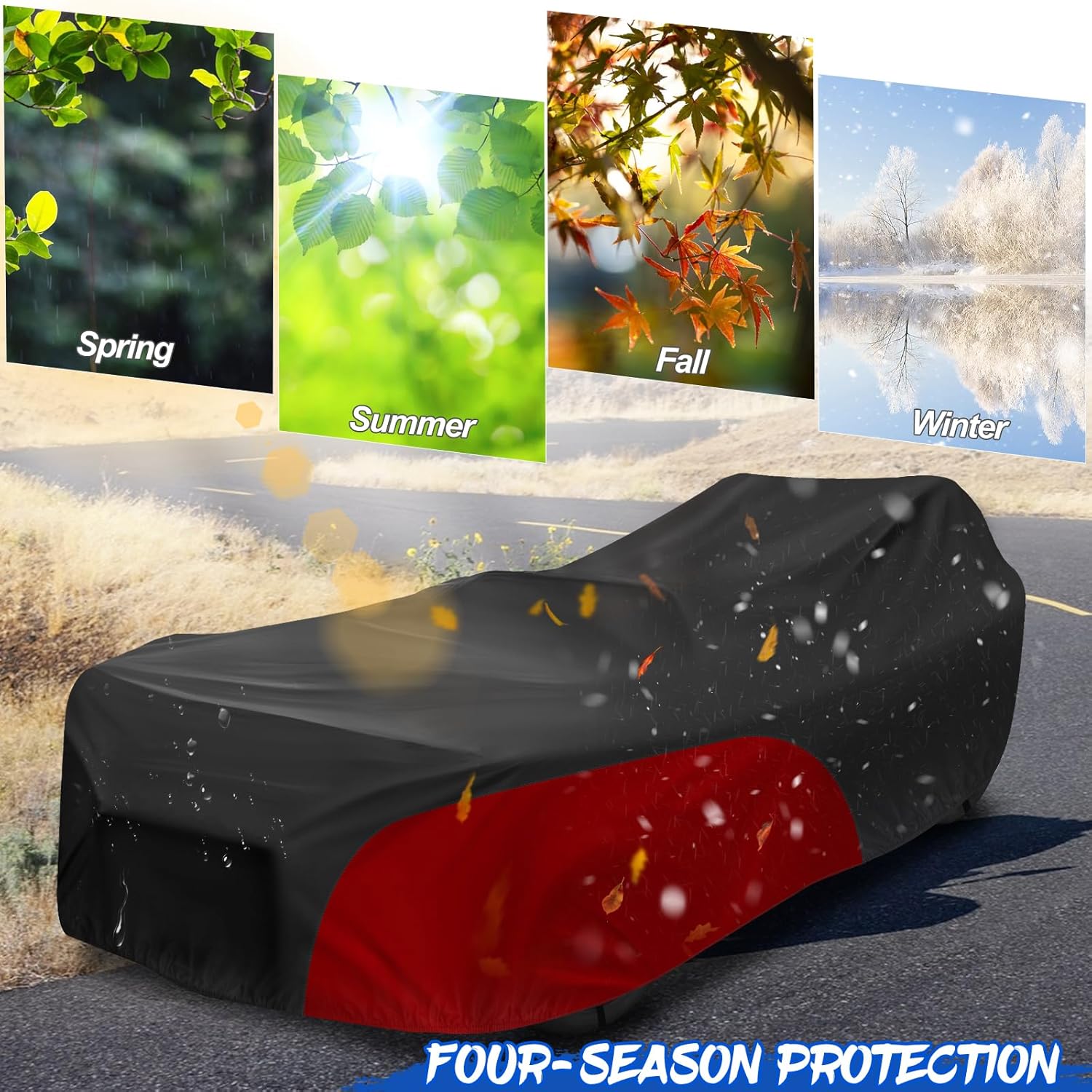 - Excellent Stability: There are a pair of fabric straps at each of the three wheels to secure your polaris slingshot even in extreme weather, an extra windproof buckle can be threaded through the fabric holes located in the middle of the bottom of each side