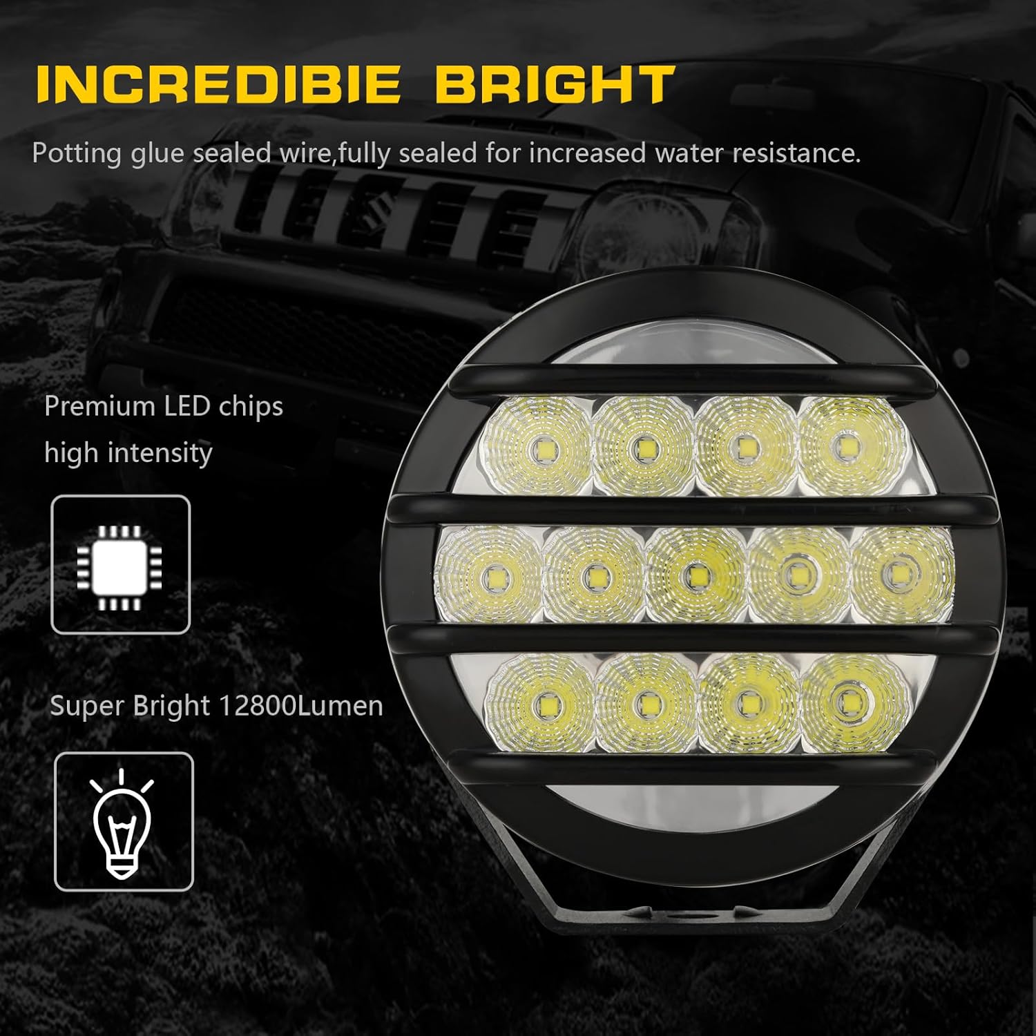 - ăEFFICIENT LIGHTING EFFECTăEach Led off road light cup is combined with spot and flood beam design. Spot beam travels quite far out and has a nice width. White offroad light emits super bright white beam. 3.7inch off road lights give safe view in most of bad weathers like rainy days, foggy days and snowy days, make driving safer.