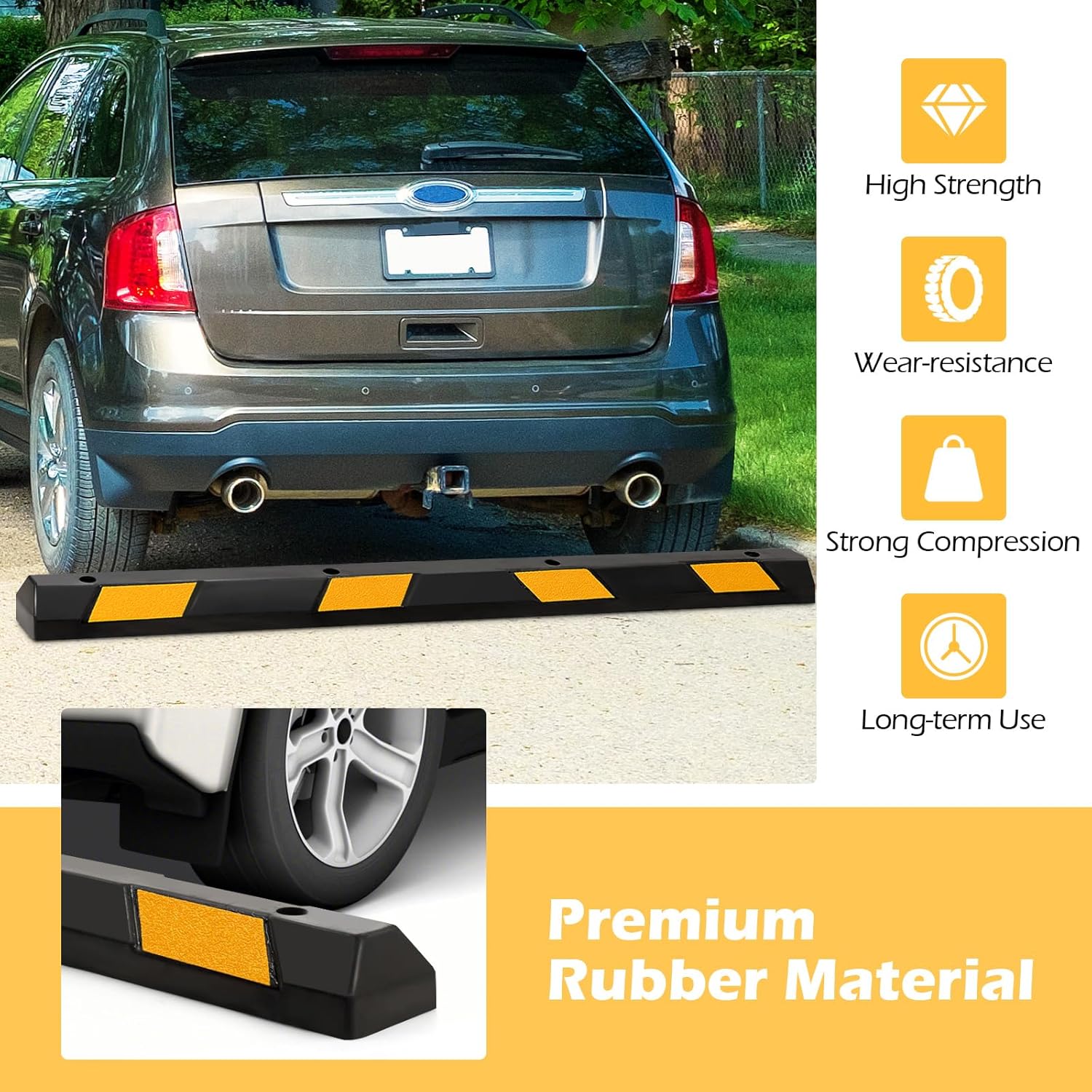 Rubber Parking Curb Garage Floor Stopper, 72" Heavy Duty Parking Lot Stopper with Yellow Reflective Stripes, Guide Wheel Stopper for Car, Truck, RV, Trailer, Driveway (4 Pack)