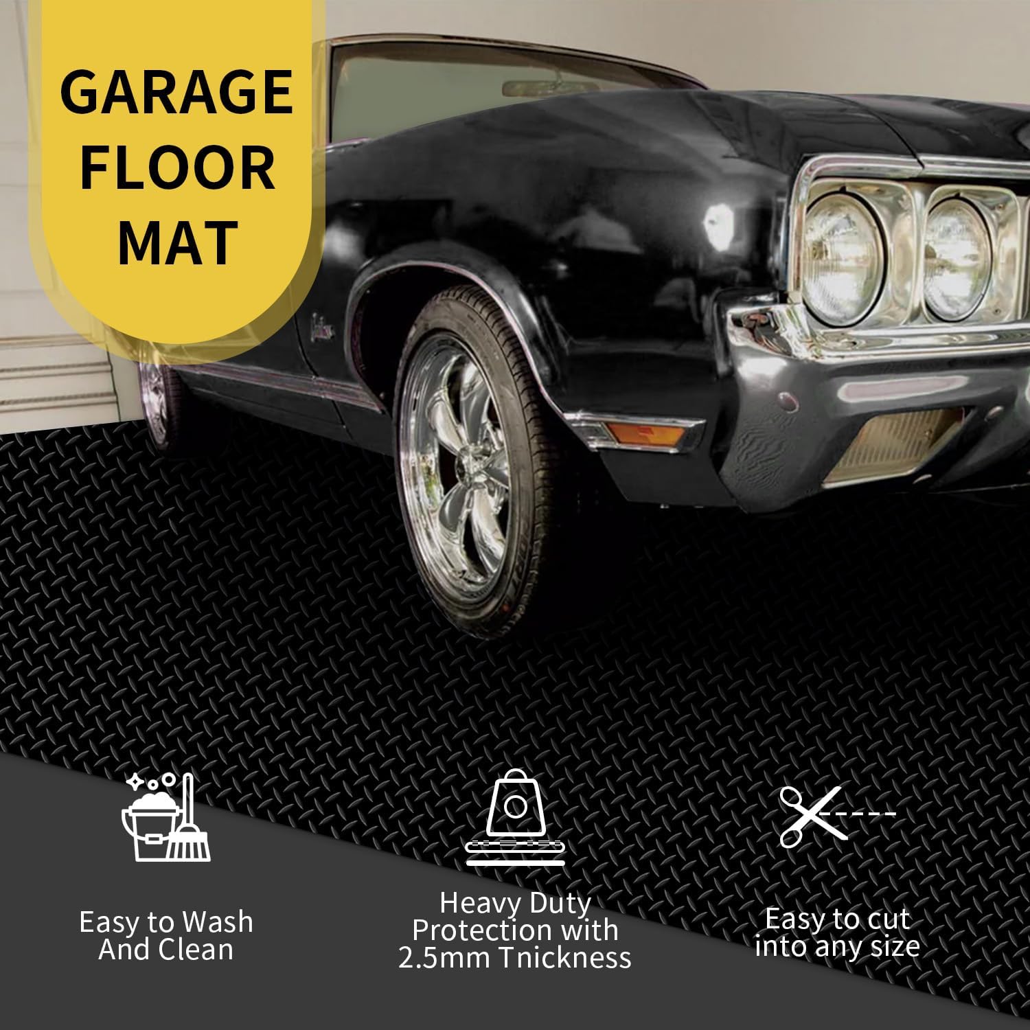 - DURABLE & SLIP-RESISTANT: Upgrade 2.0MM Sturdy Thicker PVC Material. Garage floor mats are with embossed diamond plate patterns which are totally anti-slip for safe in/out, greatly increasing the traction.