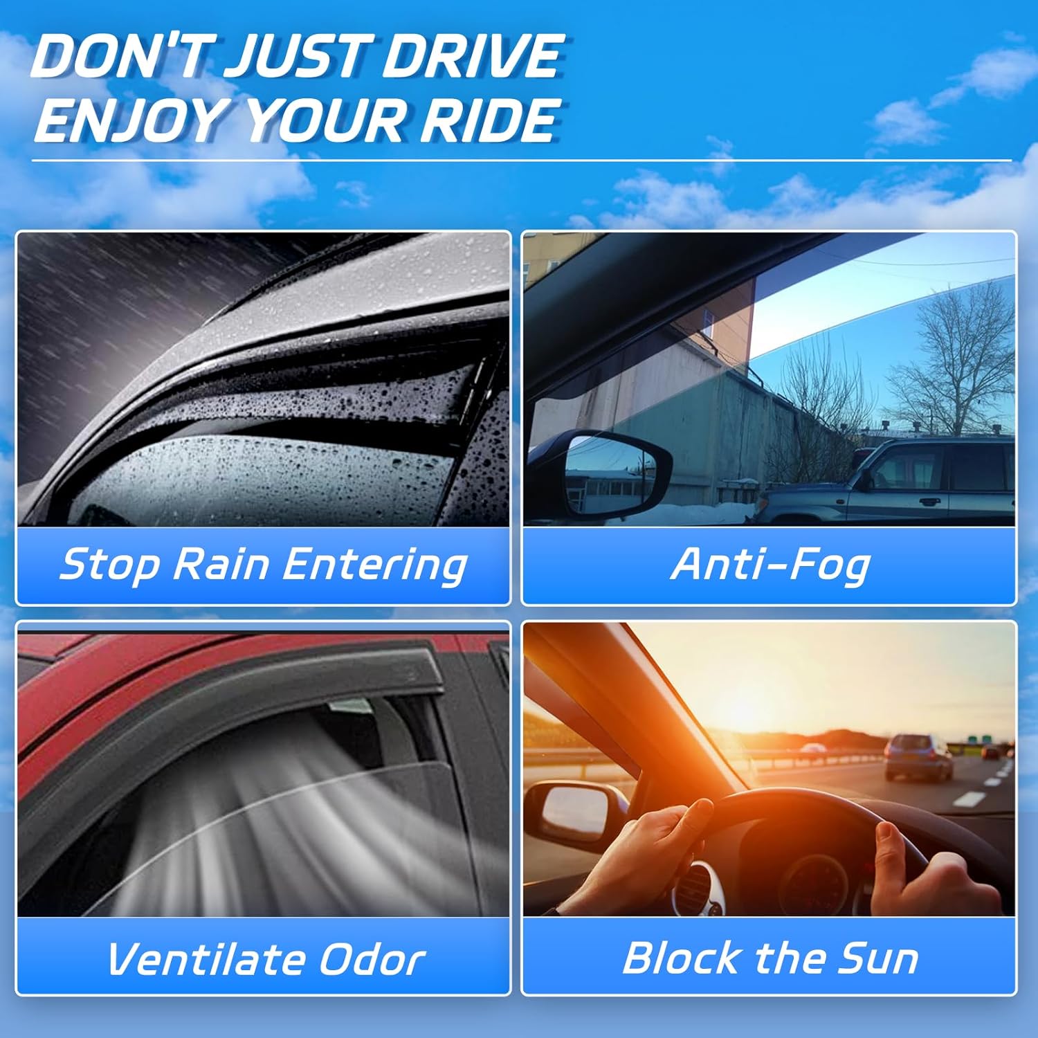 - Multipurpose Use: Reduce interior wind noise and mirror fogging; letting fresh air in and keeping the rain drops out at the same time; reduce sun glare through side windows; remove stale, stubborn odors; for car decoration strip