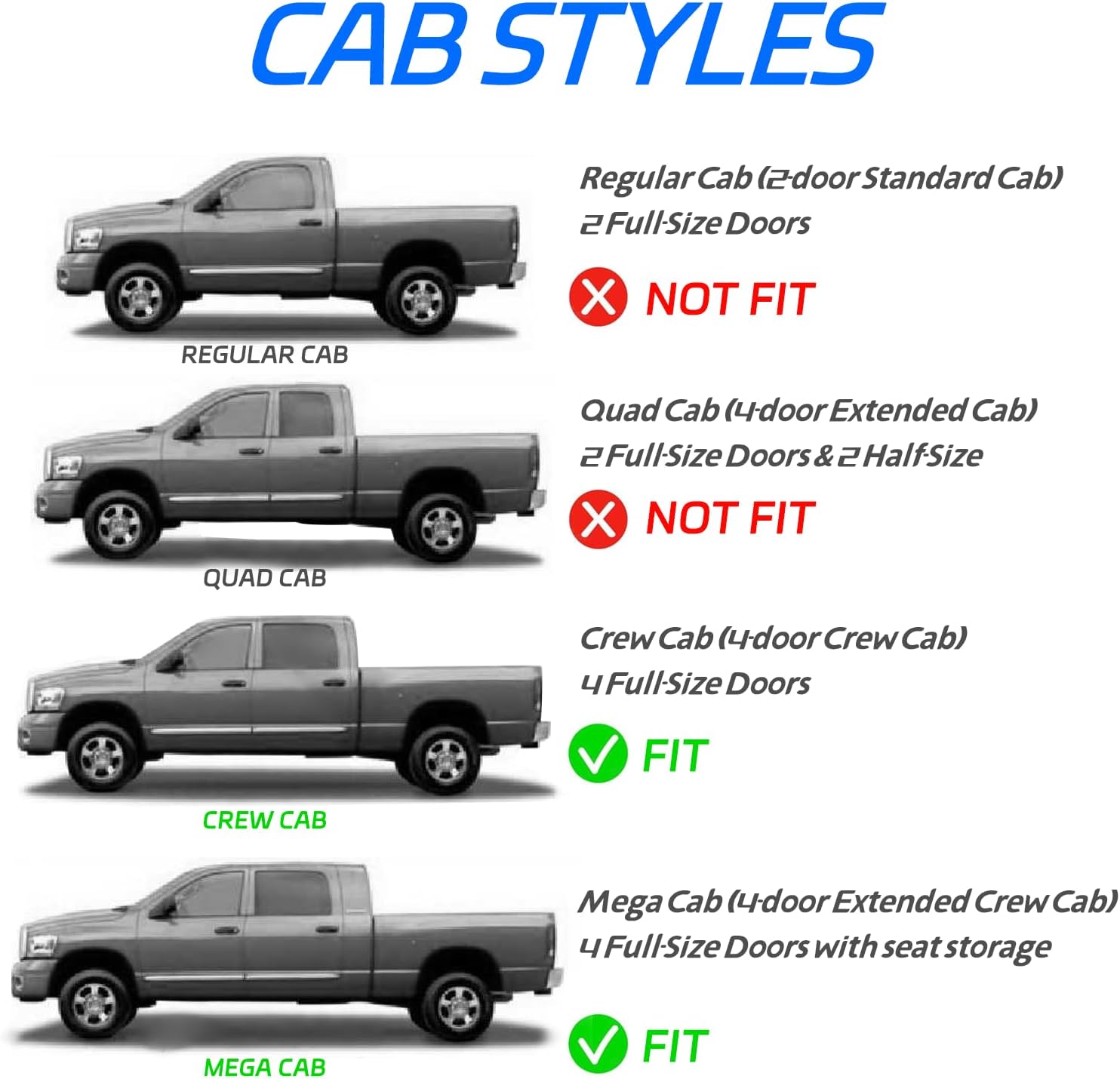 - : Vehicle Service Type fit for 2009-2018 Ram 1500 Crew Cab, 2010-2024 Ram 2500 & 3500 Mega/Crew Cab (4 FULL-SIZE Doors), 2019-2023 Ram 1500 (Classic Body Only) fit for 2009-2018 Ram 1500 Crew Cab, 2010-2024 Ram 2500 & 3500 Mega/Crew Cab (4 FULL-S⌠See more