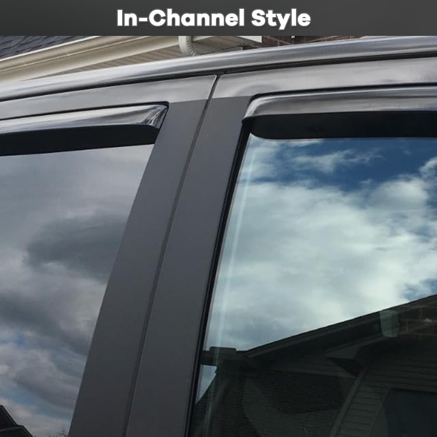 - ăIn Channel Designă CHYKORLA Window vent visors install in the window channel, provides perfect fit and sleek look for your car. Come with 4 pcs FULL-SIZE side window deflectors, 8 pcs clips, 1 pcs plastic Crowbar for a durable and secure installation. No complicated instructions are needed. Attention: Please apply the clip to fix the rain guards
