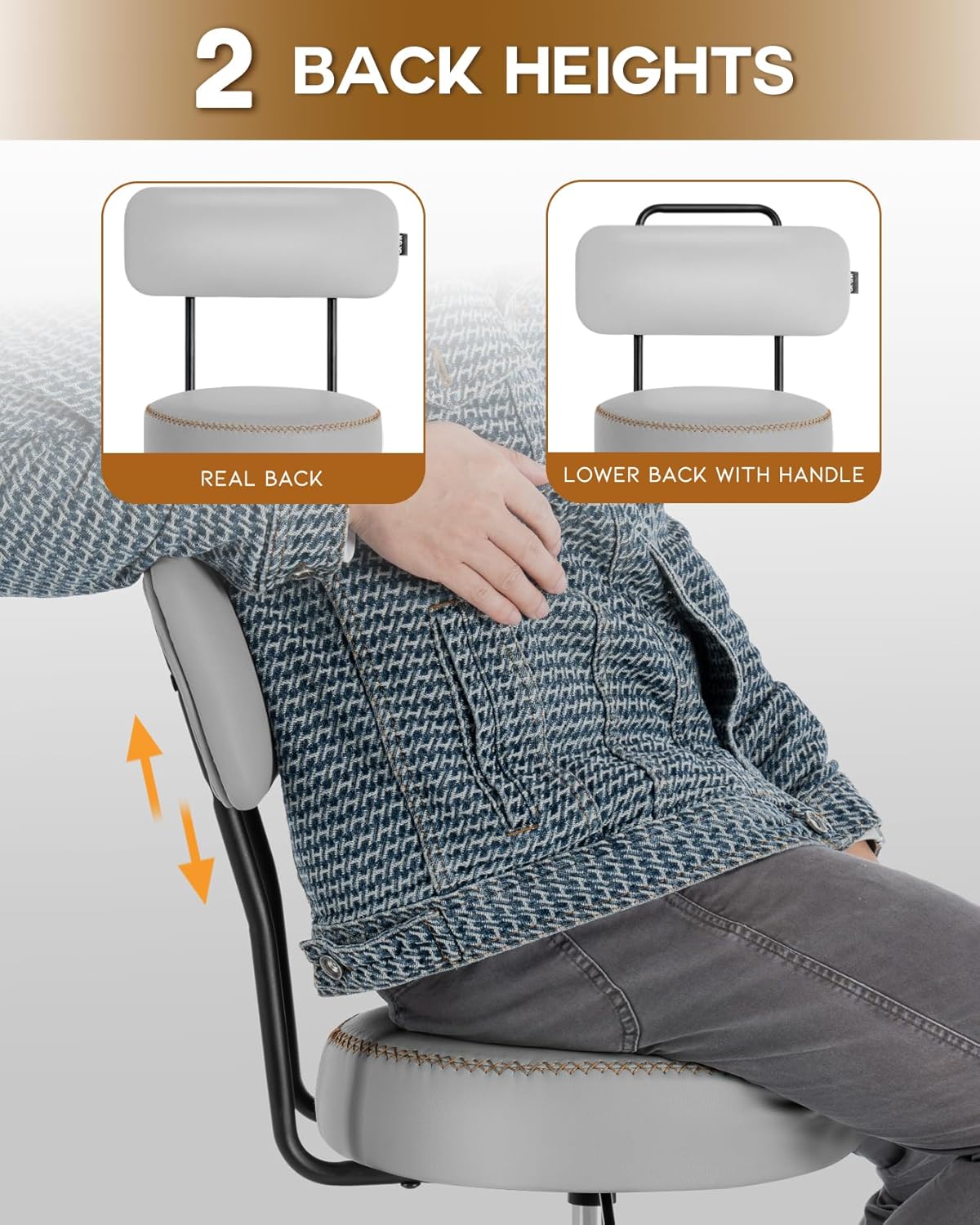 - Versatile Design: The backrest adjusts to two heights and can be removed. Wheels can be swapped for rubber foot caps, turning it into a traditional shop stool.