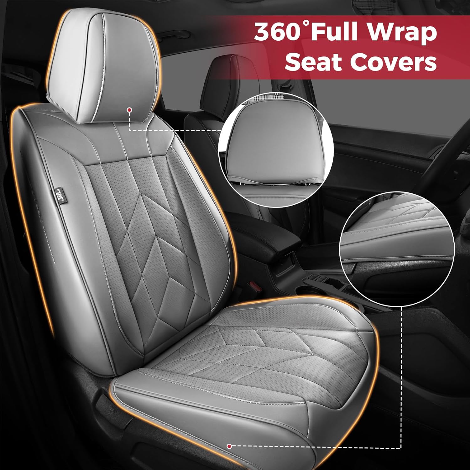 Grey Car Seat Covers Full Set - Waterproof Leather Car Seat Protector Universal Fit Forester Legacy Impreza Tucson Elantra Santa Fe Kona