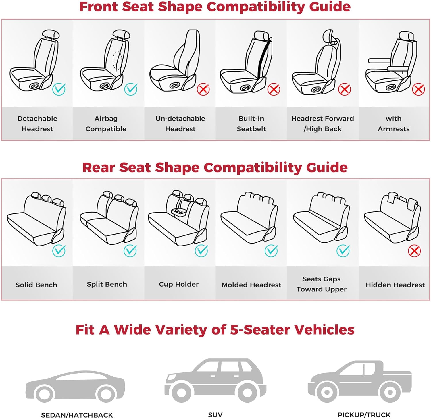 - Universal Fit: These full-coverage car seat covers are designed to perfectly fit most cars, SUVs, trucks, and pickups, ensuring a snug and secure installation for any vehicle.