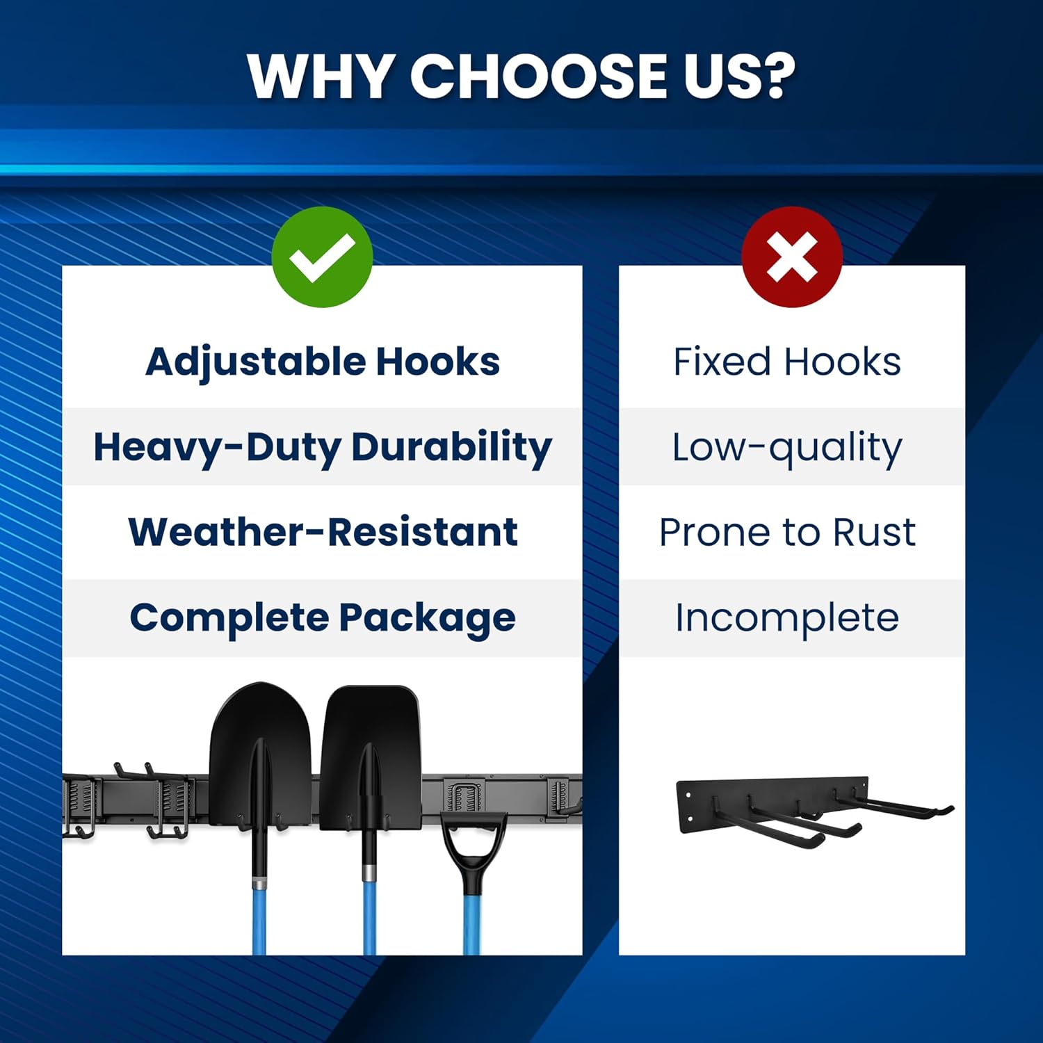 - Versatile Garage Organization: Our 64-inch garage wall tool organizer is perfect for transforming your cluttered space into an efficient storage solution for tools, garden equipment, and more.