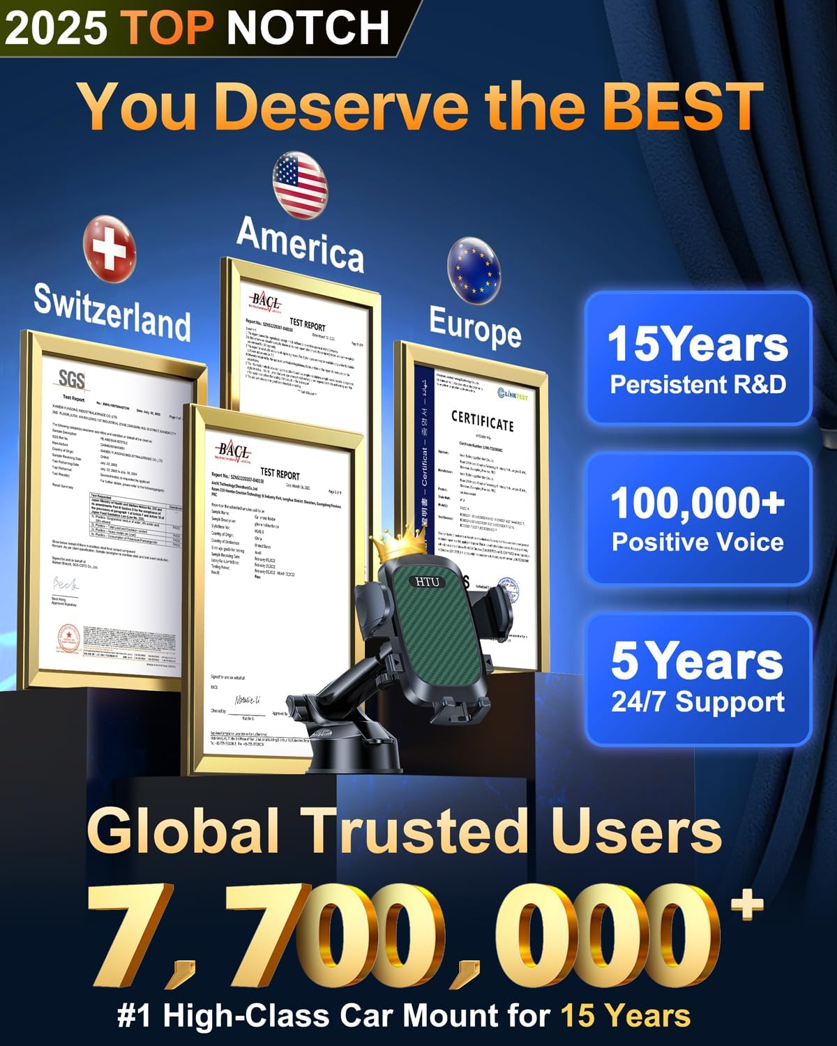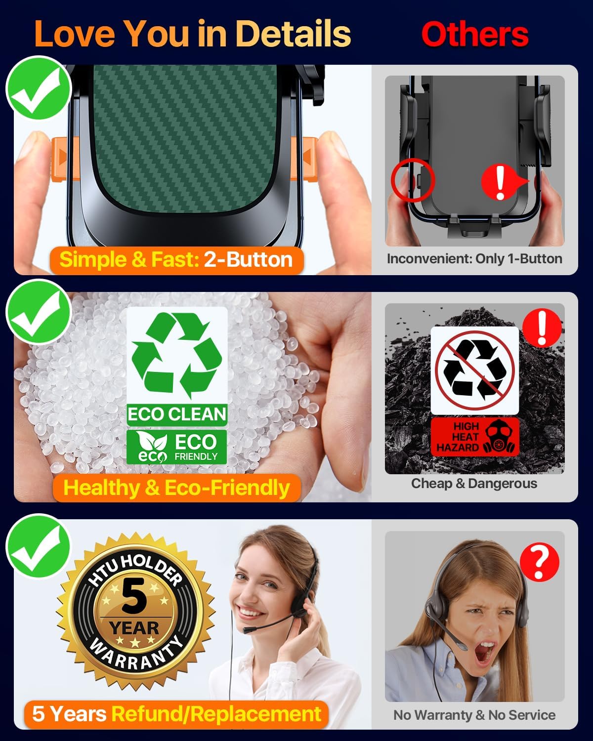 HTU 2025 Best Car Phone Holder 【Ultimate 5-in-1 & Upgraded 100+LBS Strongest Suction】【True Military-Grade & Safety Cert】 360° Windshield Dashboard Vent Mount Stand for iPhone Android & Truck, Green