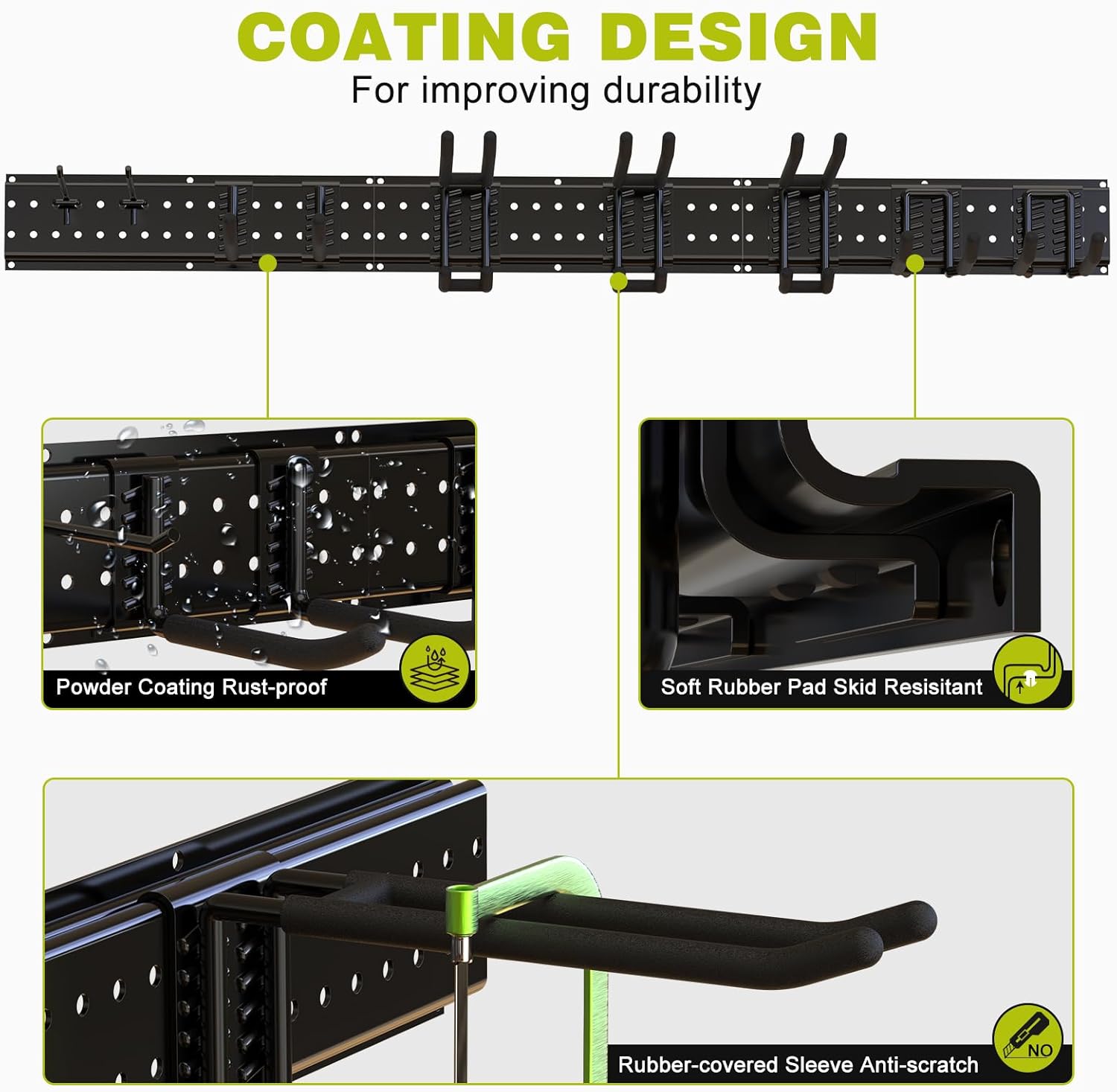 - Easy Installation and Adjustability: Includes clear instructions for quick setup. In minutes, you’ll have an organized tool wall. The garage hooks can be easily repositioned along the panel’s tracks to adapt to your changing storage needs
