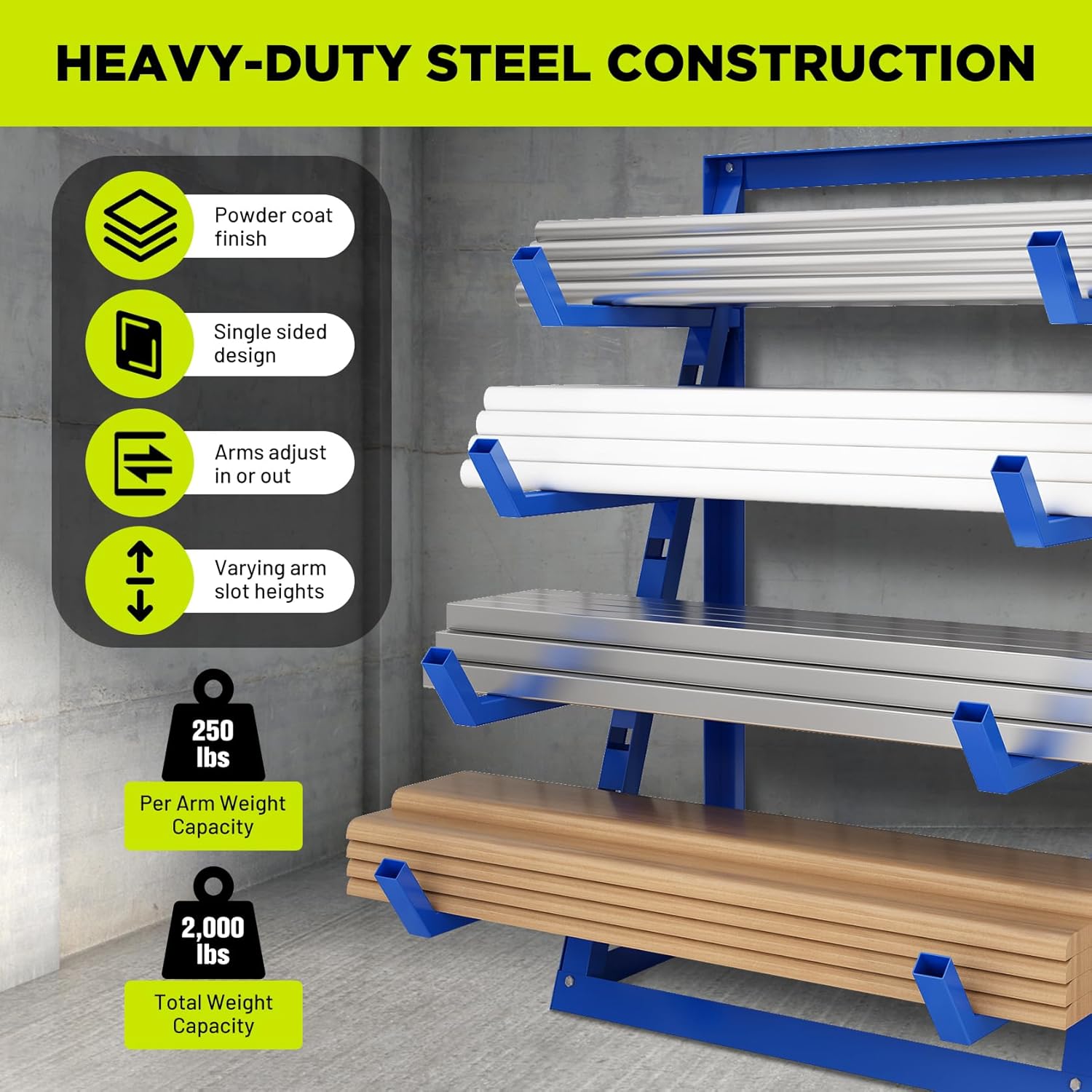 - Product Size: 24''L x 60-7/8''H x 48-3/8''W, Blue, made of high-quality alloy steel, strong and will not be easily deformed, the rack and arms consistently hold heavy material, load up to 2000 lbs Capacity.