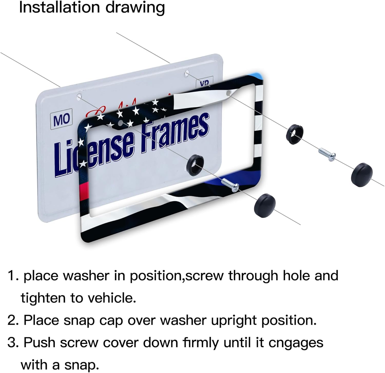 - Easy To Install: The Package of patriotic license plate covers Includes 4 Black Carbon Fiber Pattern Screw Caps And 5 License Plates Screws/ License Tag Fasteners With Washers; The patriotic license frame Screw Hole Is Relatively Small And Easy To Install, You Can Install The license plate frames for men Quickly And Efficiently