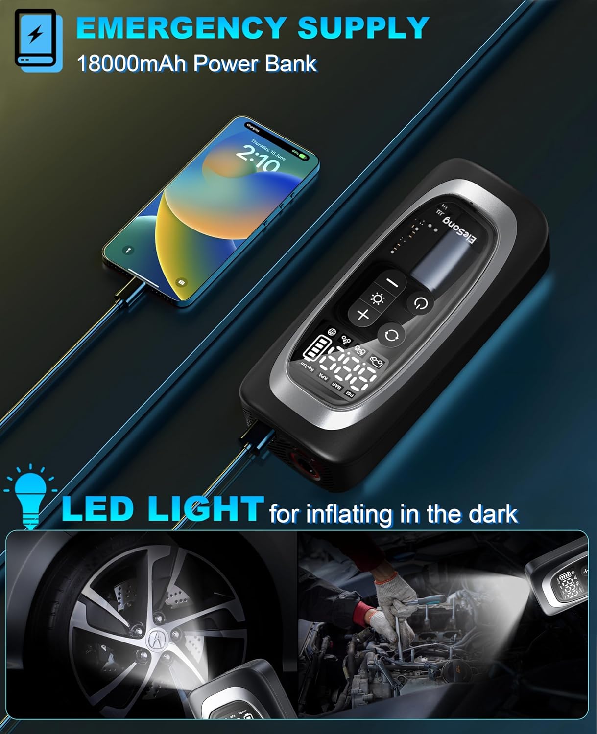 - Cordless, Long Runtime: No cables, no limits. This air compressor portable offers extended cordless use and to charge your phone or tablet via USB or car adapterāideal for outdoor adventures and emergency kits