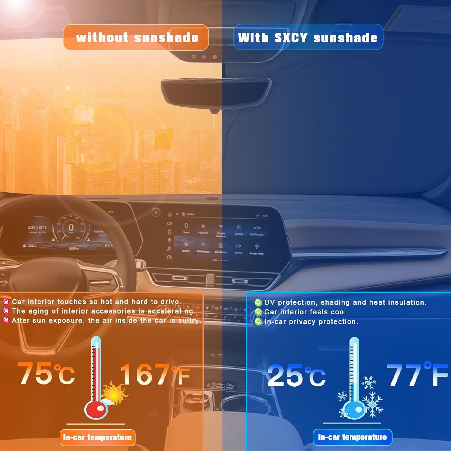 - 1.Custom Fit: this windshield sun shade is custom designed for 2025 Chevy Equinox [Gas] sunshade for 2025 Chevy Equinox accessories front window [Not for EV!!].You don’t need to worry about oversize or too small,consider it if you need a car protector cover that protects your car interior from sunburn.