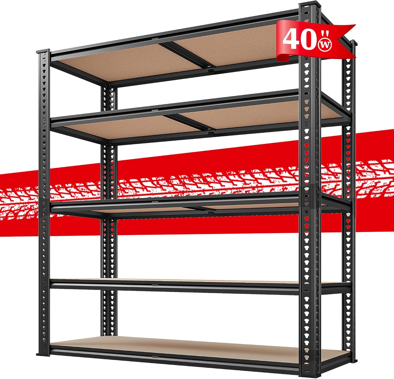REIBII 40" W Garage Shelving 2500LBS Storage Shelves 72" H Metal Shelving 5 Tier Metal Shelves Adjustable Pantry Shelf for Closet Kitchen Warehouse 40" W x 19.7''D x 72''H