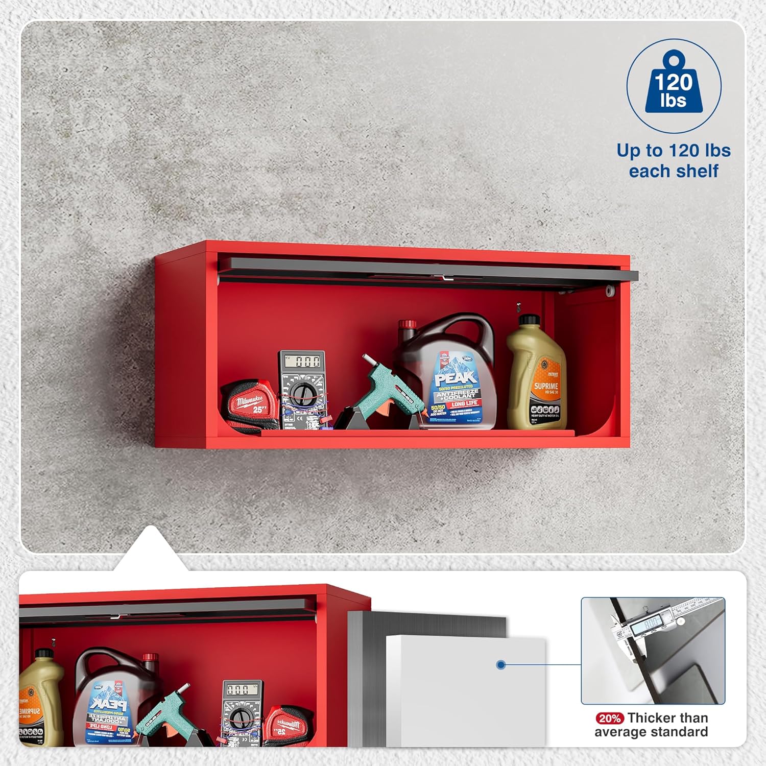 - High-quality - Our metal wall cabinet is crafted from 0.6mm thick SPCC steel plate, which compared to inexpensive wooden and plastic wall cabinets, can withstand significantly more weight. Each shelf can bear up to 200 pounds, It is the optimal choice for maximizing your storage space.
