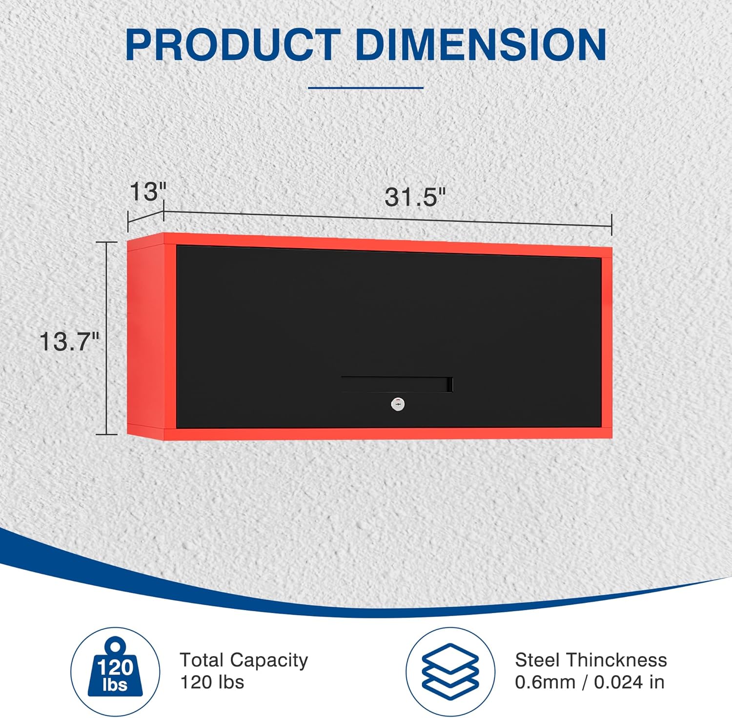 Metal Storage Cabinet Black&Red Wall Cabinets with Locking Door - Wall Mounted Storage Cabinet for Garage Warehouse Home Office - Assembly Required