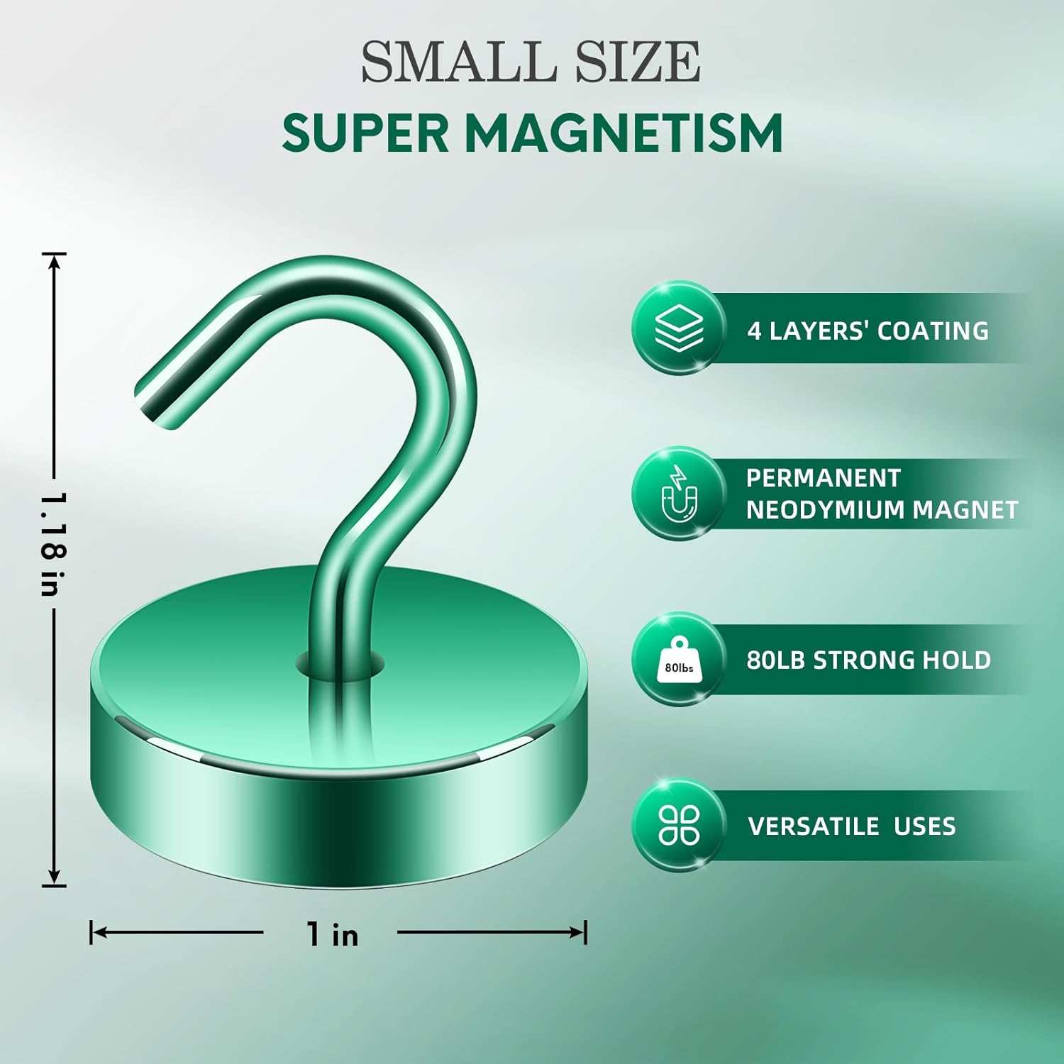 Neosmuk Magnetic Hooks, Cruise Ship Essentials, 80lb+ Heavy Duty Magnetic Hooks for Cruise Cabins, Refrigerator, Grill, Hanging, and Travel | Extra Strong Must-Haves Magnet Hook,Green