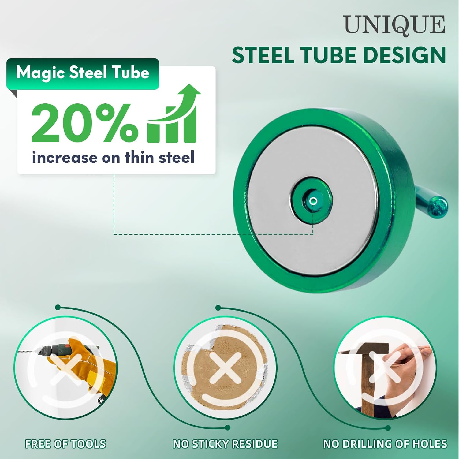 - ✔MAGIC STEEL TUBE DESIGN - Unique design of steel tube inside the base of magnetic hooks greatly increases the attractive force , especially on thin steel! It increase approximately 20% force comparing those none-tube magnets. it solves the problem of weak force on thin steel. Permanent magnetic hook with magic steel tube, strong magnetism lasts forever!