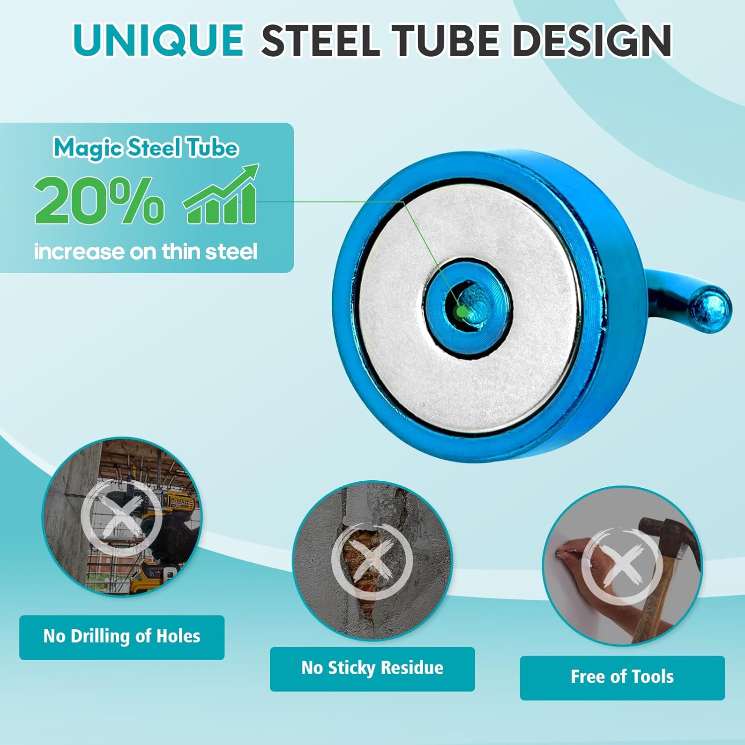 - ✔MAGIC STEEL TUBE DESIGN - Unique design of steel tube inside the base of magnetic hooks greatly increases the attractive force , especially on thin steel! It increase approximately 20% force comparing those none-tube magnets. it solves the problem of weak force on thin steel. Permanent magnetic hook with magic steel tube, strong magnetism lasts forever!