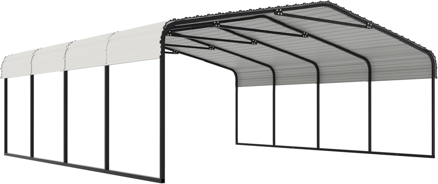 - [Heavy-duty Metal Carport] Our outdoor carport features steel roof to withstand any weather better than traditional PE cover. The roof is made of 29-gauge thickness steel panels which makes it weatherproof and rust-resistant. The frame is made of 2"x2"15-gauge thickness steel tube which is anti-corrosion and study for premium snow load and wind rating.