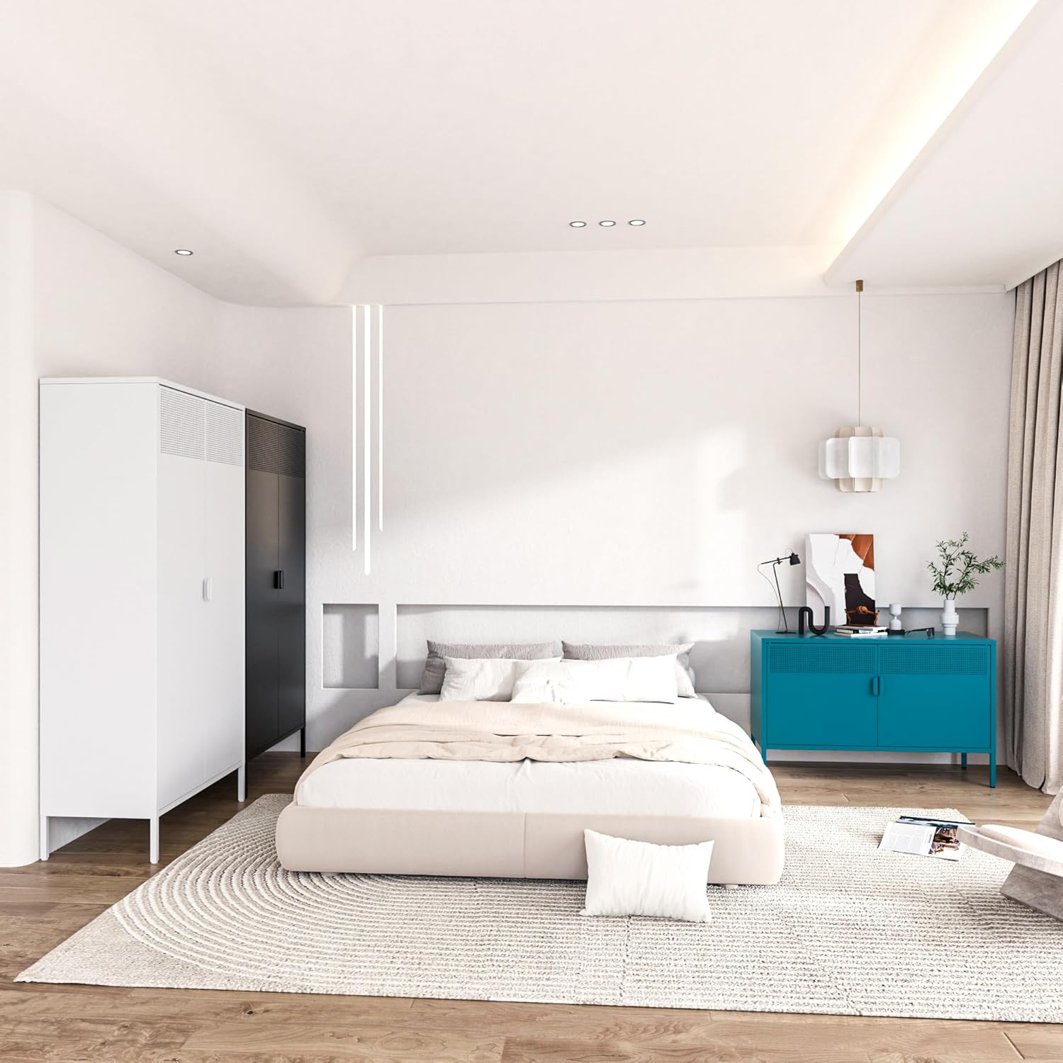 2 Door Storage Sideboard, Metal Storage Cabinet with 2 Adjustable Shelf,Multipurpose Metal Accent Cabinet for Office Home,Music Studio (Peacock Blue, 25''H)