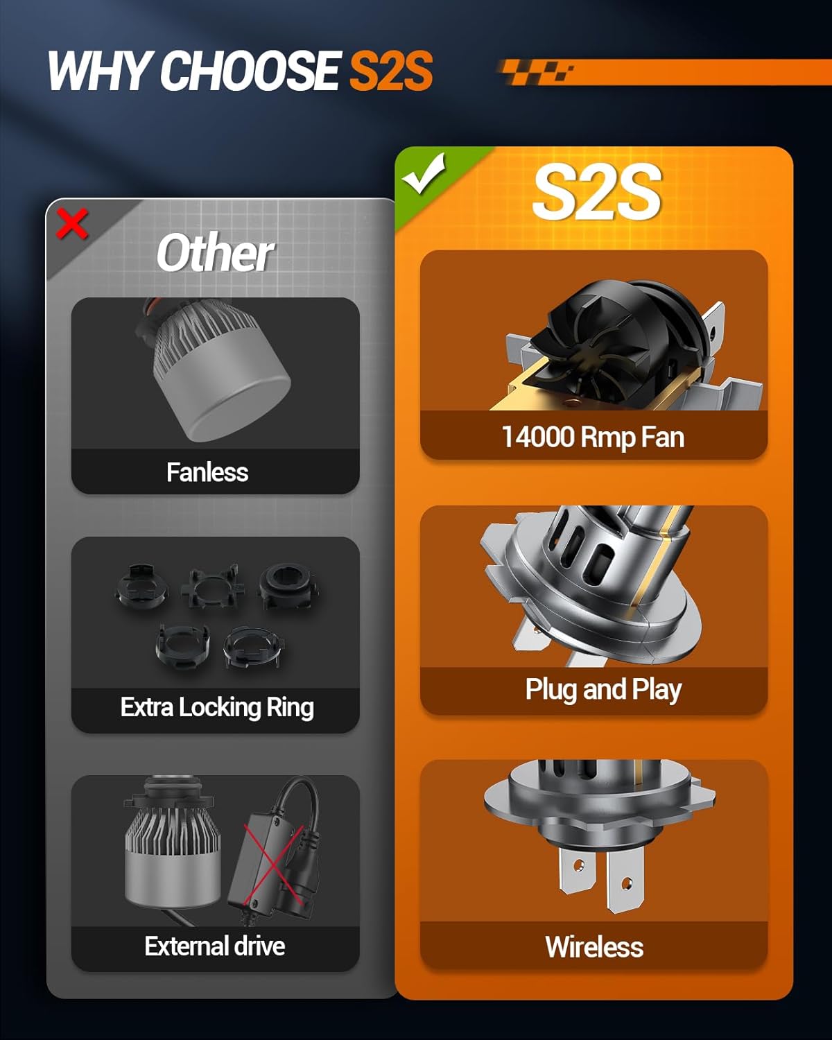- 99% Vehicles Compatible: Sealight S2S H7 LED bulb ensures seamless integration with 99% of the vehicle system. Their optimized wattage closely mimics the inventory of light bulbs, effectively reducing Canbus errors, flickering and radio interference