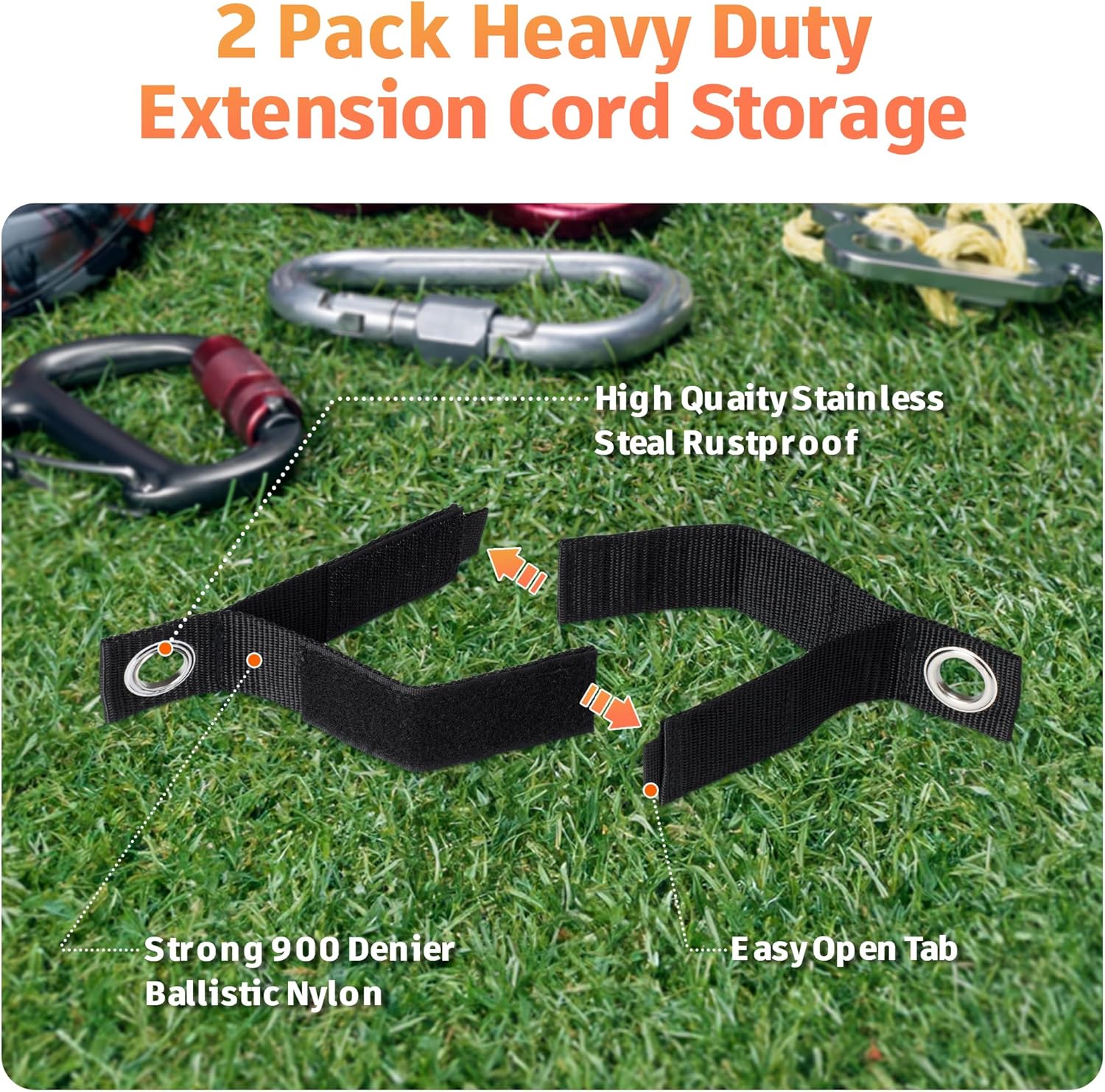 - Pack of 2 Heavy-Duty Storage Straps: Constructed from heavy-duty weatherproof polypropylene, featuring industrial-strength hook and loop fasteners and rust-resistant stainless steel grommets, these heavy-duty storage straps are designed for long-lasting useâindoors or outdoors. With a capacity to hold up to 50 lbs (22 kg), you can say goodbye to bulky cord reels. Nacial storage straps are the ultimate solution for organizing extension cords, hoses, ropes, and much more!