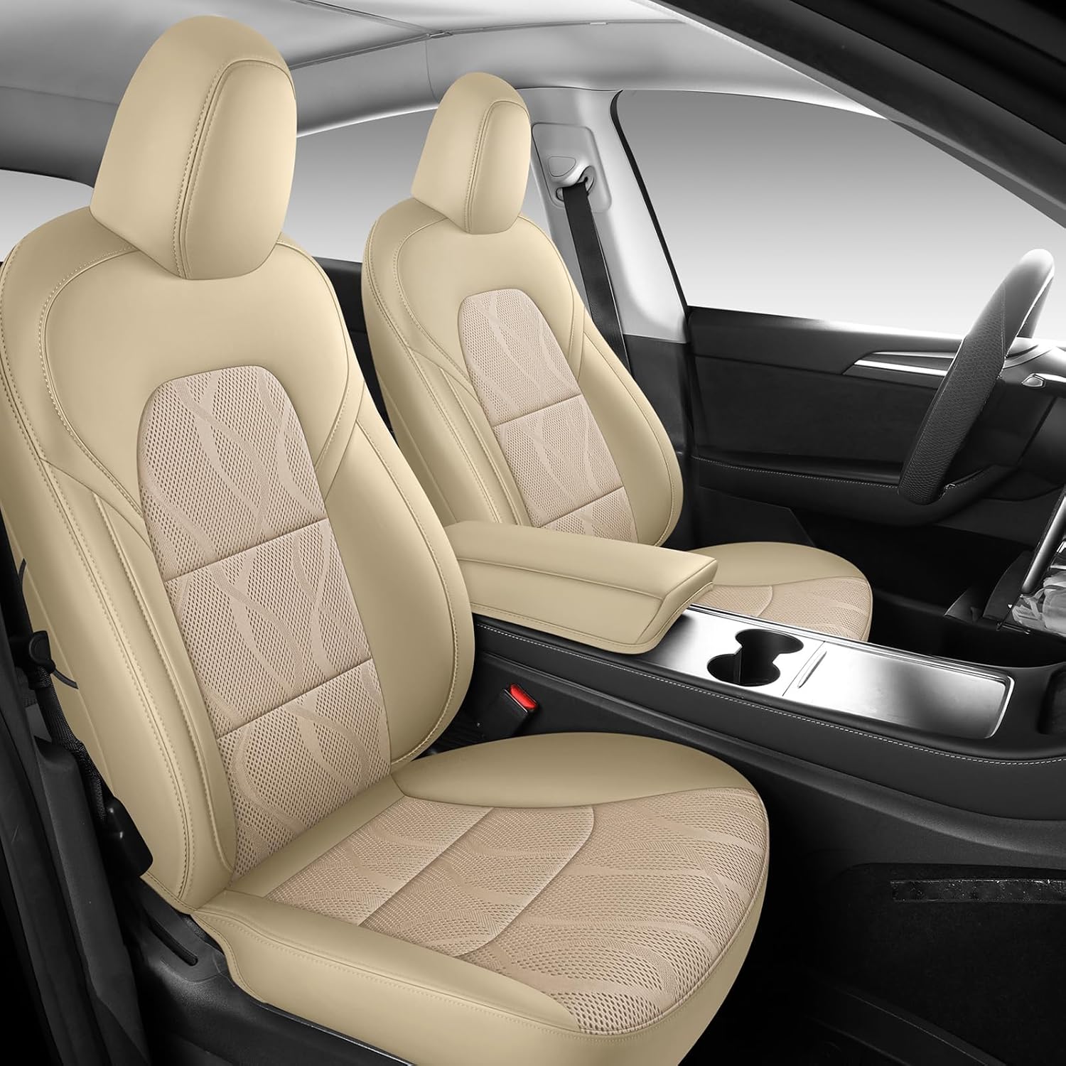 Tesla Model Y Seat Cover Full Set, Faux Leather Tesla Car Seat Cover, Perfect Suitable for Tesla Model Y 2020 2021 2022 2023 2024 2025 (Beige)