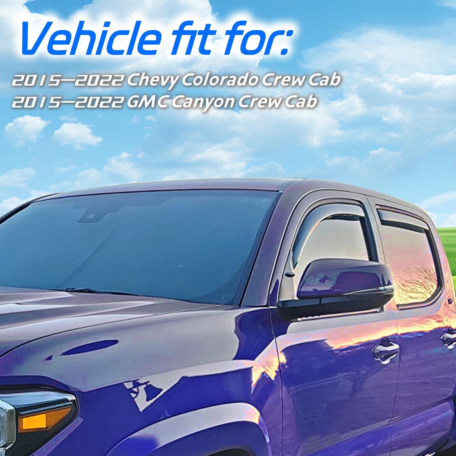 - ăVehicles FitmentsăCHYKORLA Window vent visors fits for Chevy Colorado 2015-2022 Crew Cab,GMC Canyon 2015-2022 Crew Cab. Please be advised that the visors are vehicle specific. Please check your vehicle's compatibility to ensure proper fitment