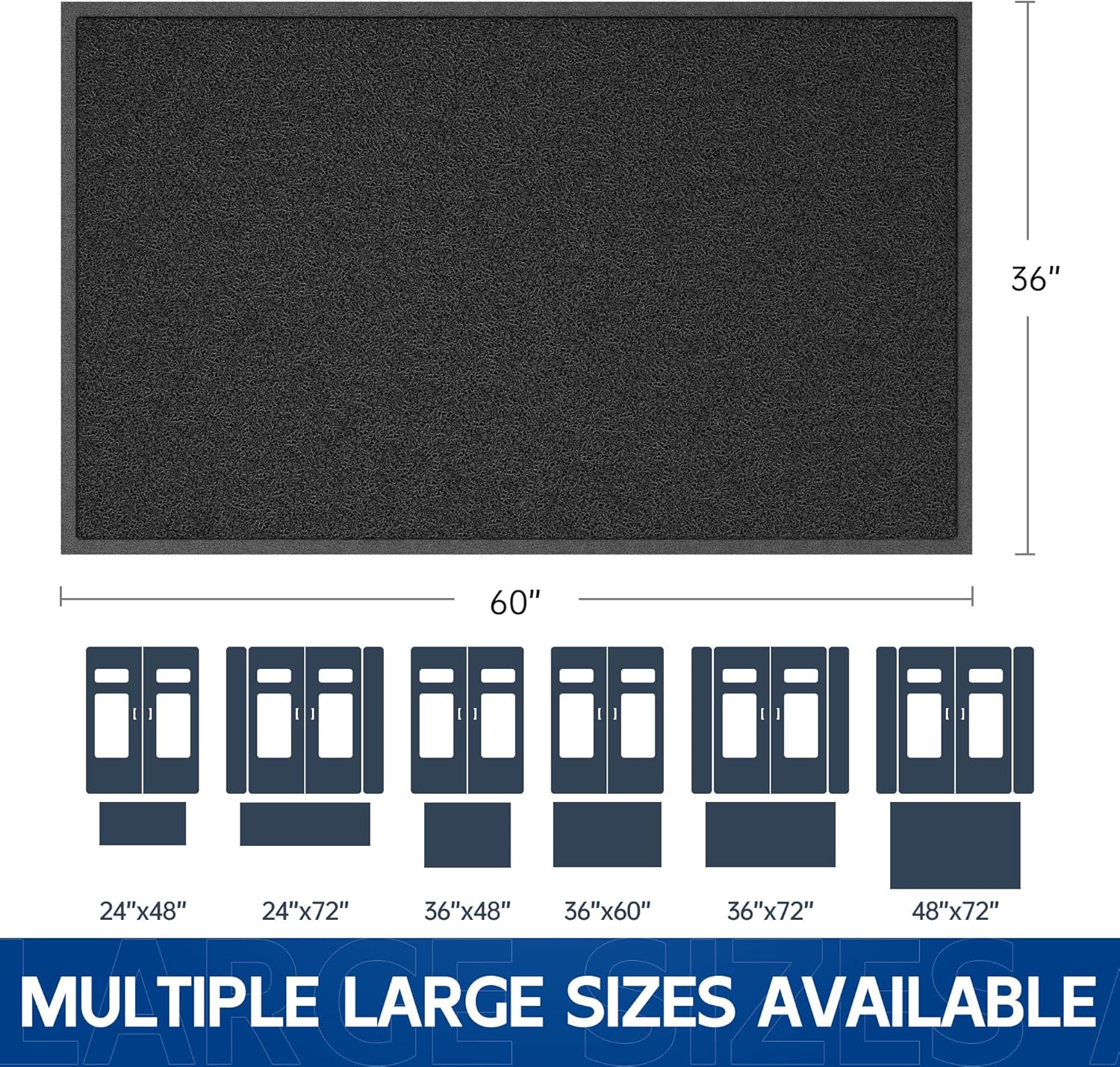 - Large Size for Multiple Entryway Types: Our heavy duty commercial door mat is widely used in outdoor, indoor, industrial floor and other places with high traffic. Multiple sizes are available to choose. size including 24" x 48", 24" x 72", 36" x 48", 36" x 60", 36" x 72", 48" x 72"