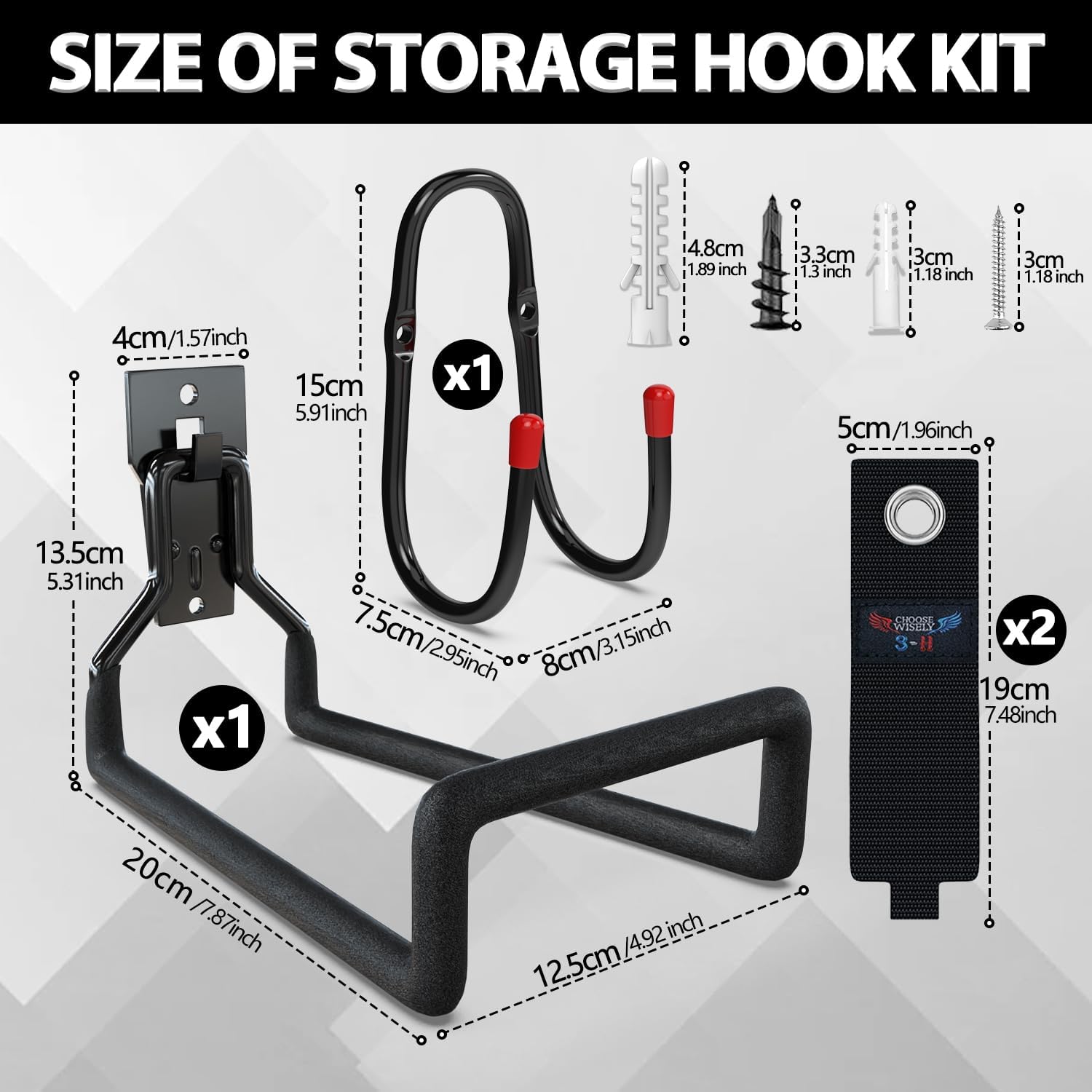3-H Garden Hose Holder Wall Mount 2 Pack,Solid Steel Hose Hanger wih Extension Strap,Water Hose Holders for Outside to Hang Outdoor Air Hose,Ropes,Pipes,Power Tools,Ladders,Bikes,Bulk Items
