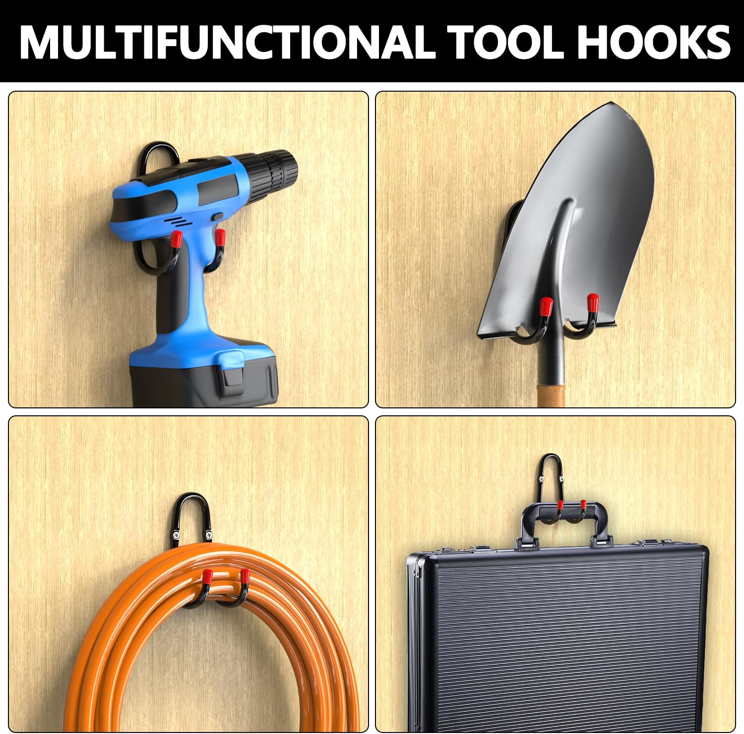 - Upgrade steel material and backboard: Our extra large square garden hose hook upgraded the backboard and added additional support points, which solves the problem of traditional hose hook where the backboard and steel material tend to separate at the welding points under long-term heavy loads. The heavy duty hose mount is made of construction-grade 8mm steel bars, so that our garage organizer can hang 10kg more weight than traditional hooks