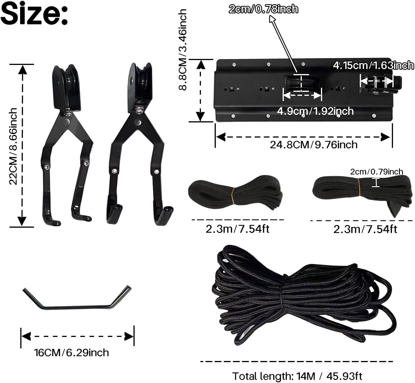 - 【MULTIPLE FUNCTIONE】This set includes two overhead pulley systems designed to securely hang bicycles, ladders, or roof luggage racks from the ceiling in your garage or shed