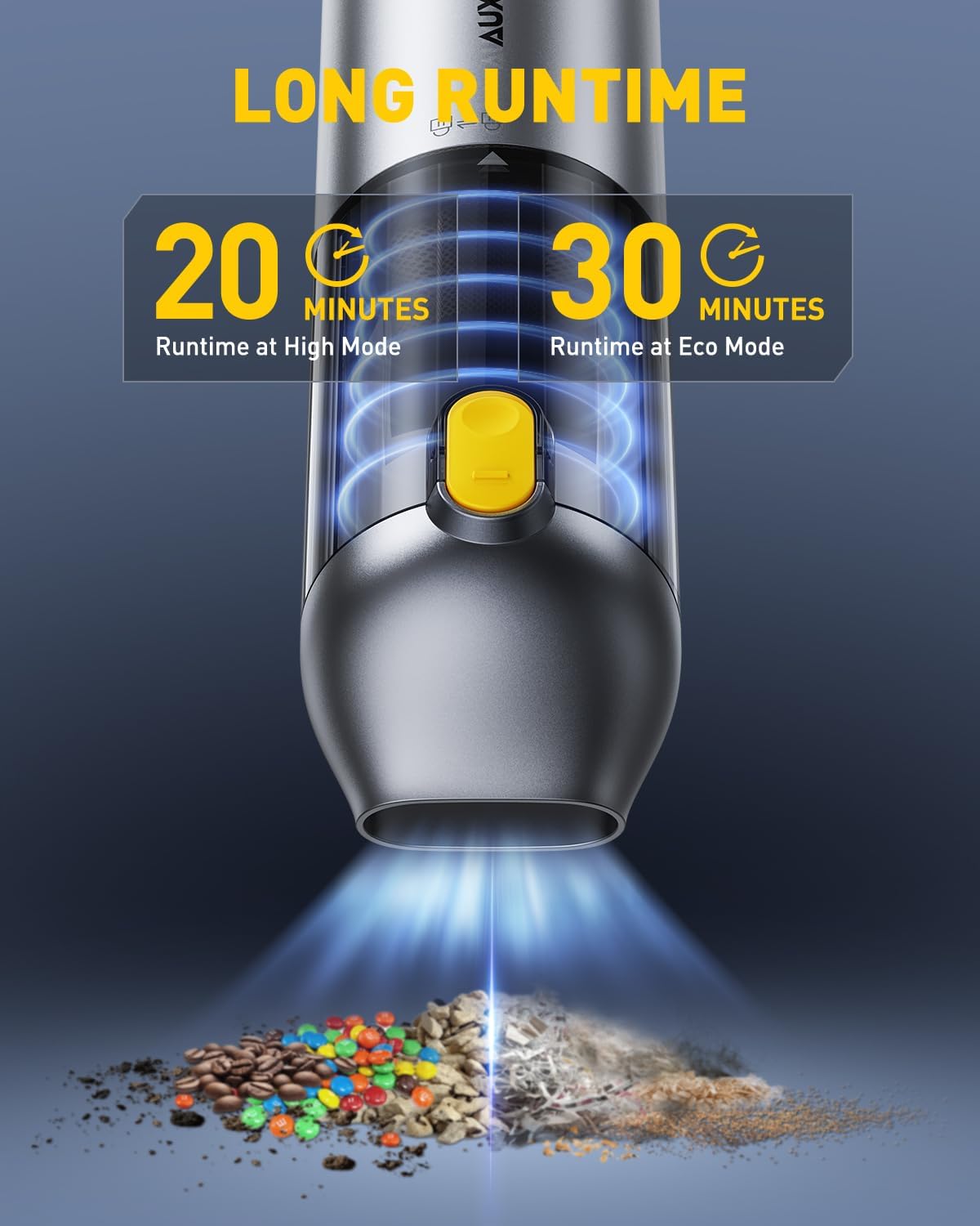 - ă4 IN 1 MULTI-FUNCTIONAL CORDLESS CAR VACUUMăAUXITO Mini Vacuum Car Cleaner is equipped with a variety of nozzles to perfectly meet the different needs of vacuuming, blowing, inflating and pumping. It not only quickly cleans car seats, trunks, floor mats, computer keyboards, sofas, carpets and any hard-to-reach places, but also helps to inflate yoga balls, swimming rings and all inflatable items, and vacuums air for all kinds of vacuum storage bags to save space